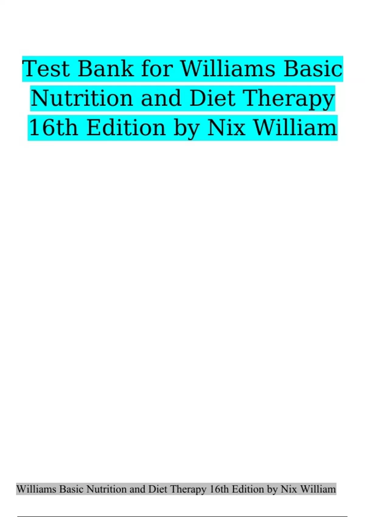 Complete Test bank For Williams Basic Nutrition And Diet Therapy 16th Edition By Nix William! RATED A+