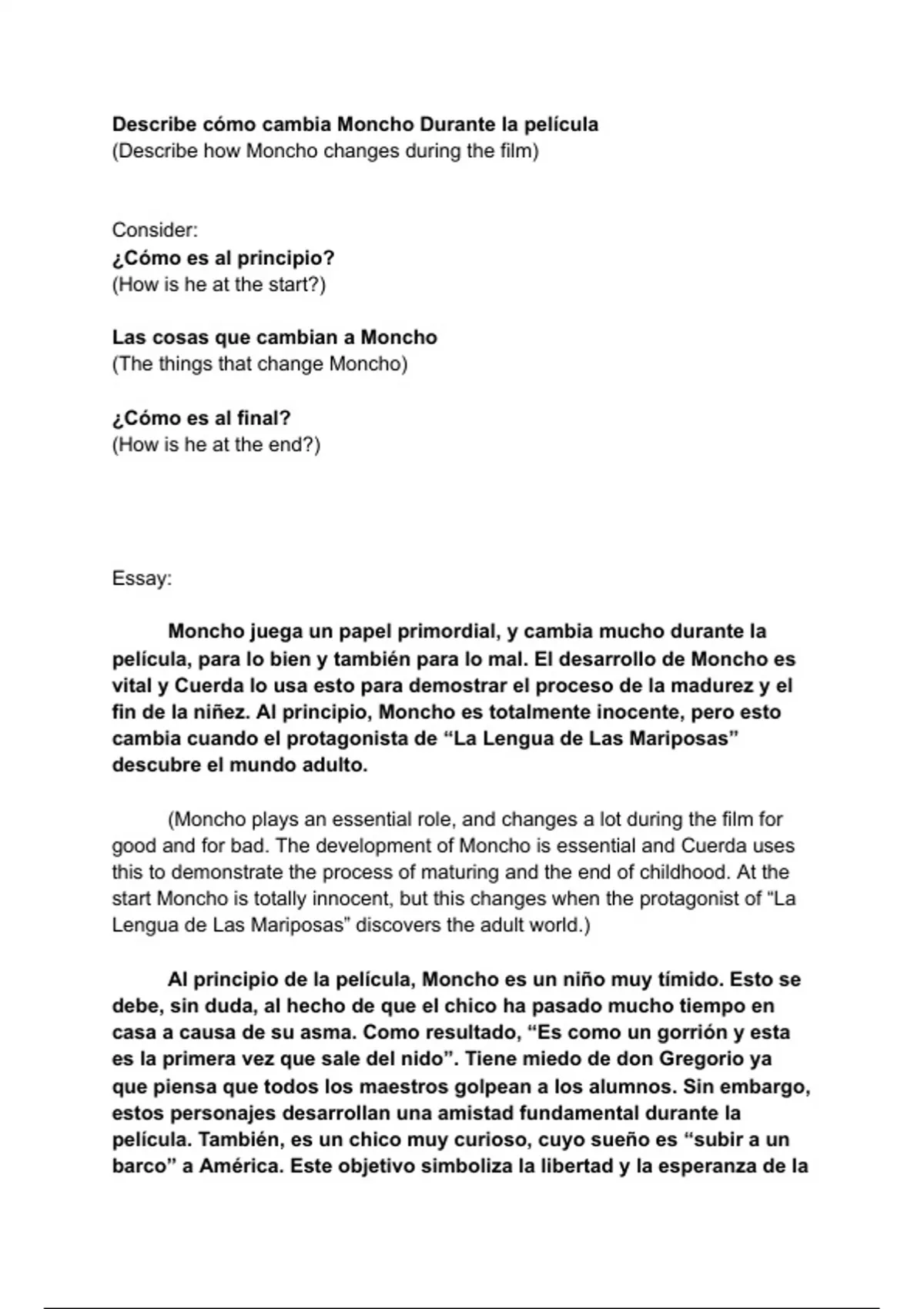 (Describe how Moncho changes during the film)
