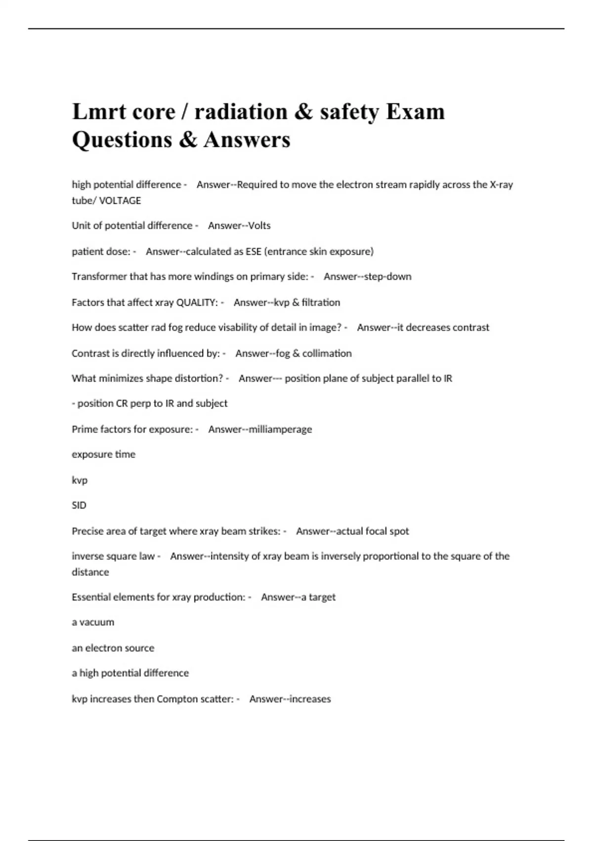 Lmrt core ,radiation & safety Exam Questions & Answers.