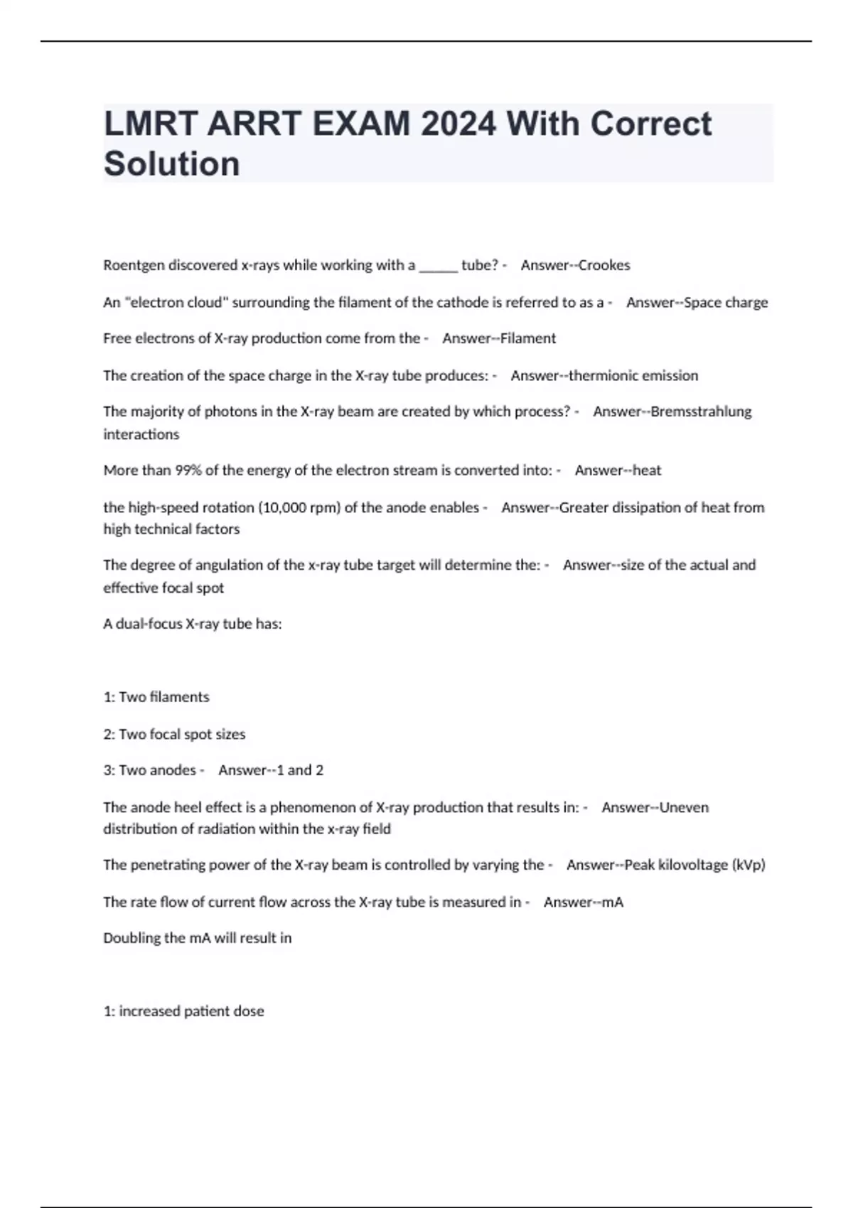 LMRT ARRT EXAM 2024 With Correct Solution