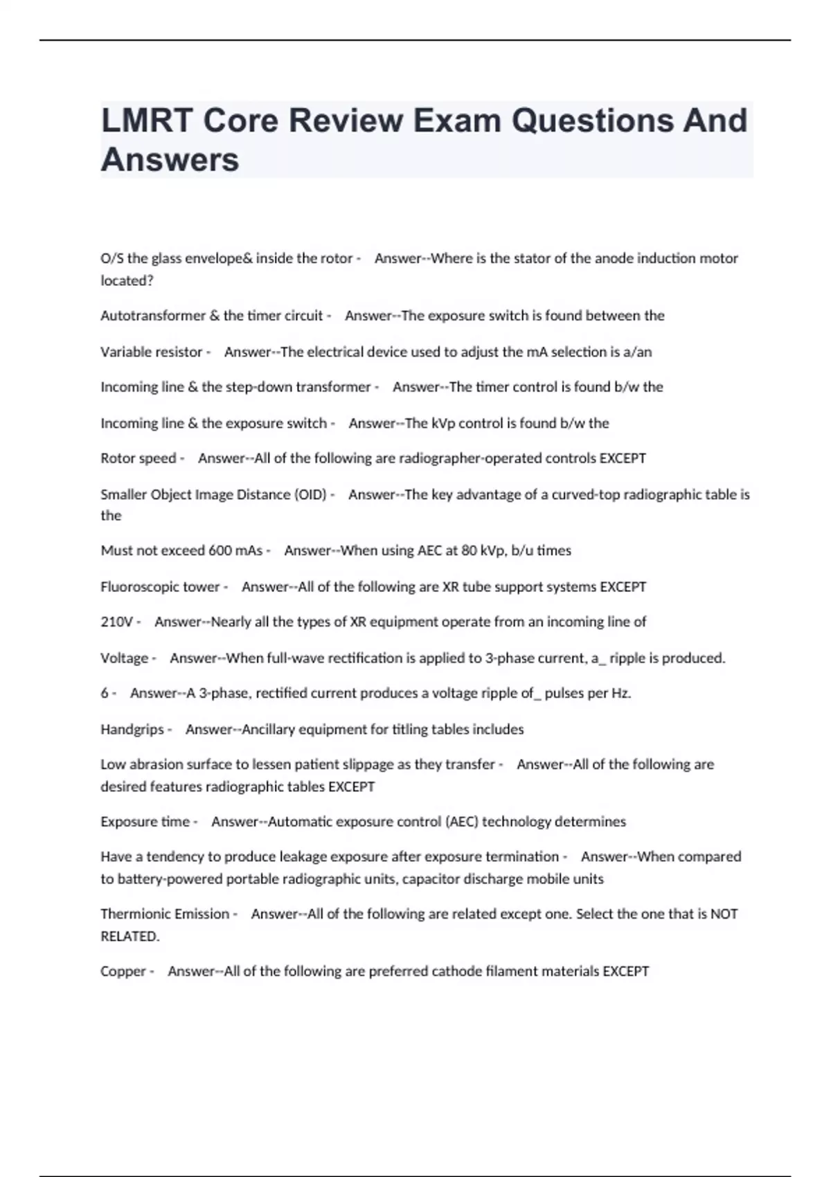 LMRT Core Review Exam Questions And Answers.