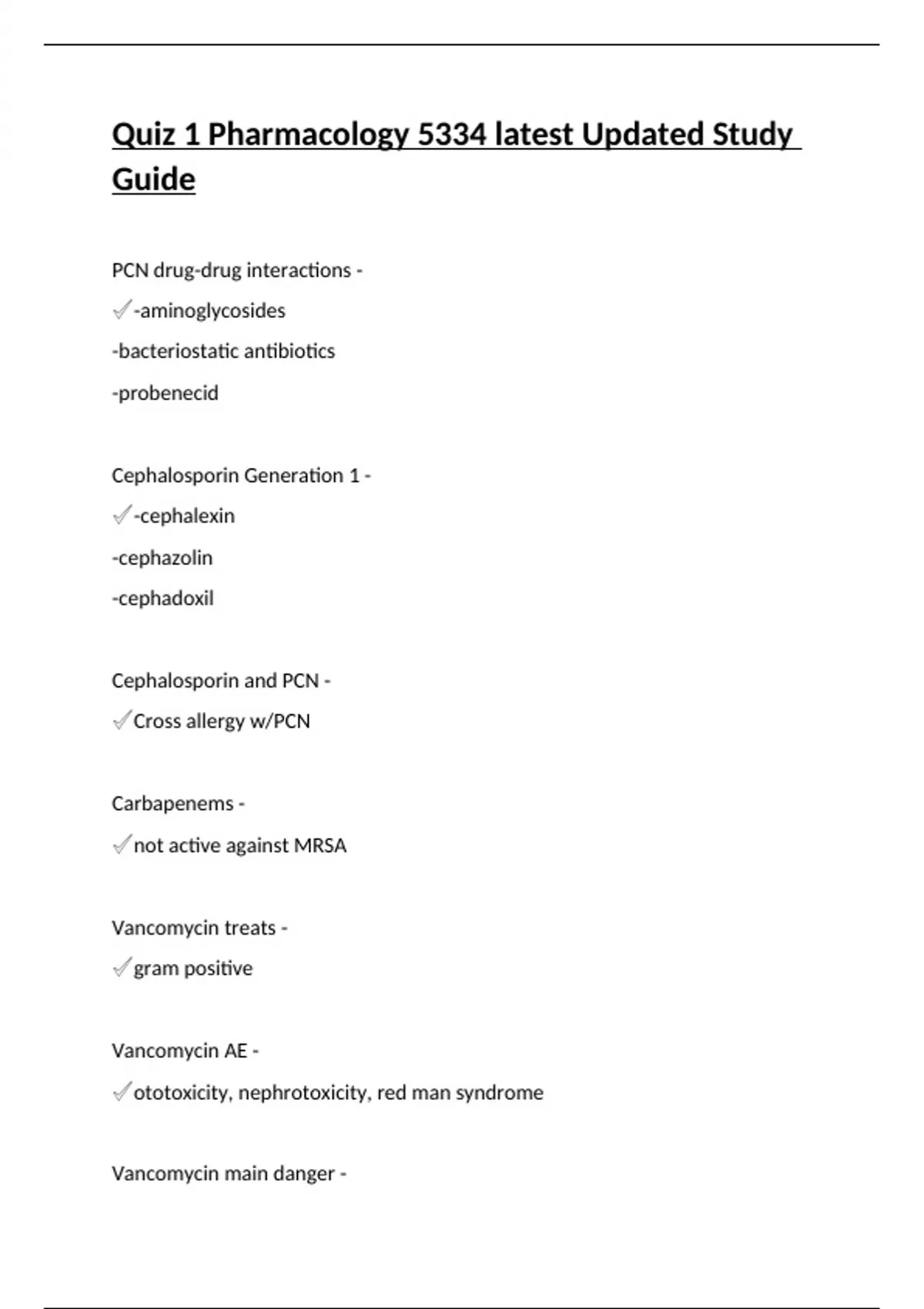 Quiz 1 Pharmacology 5334 latest Updated Study Guide.