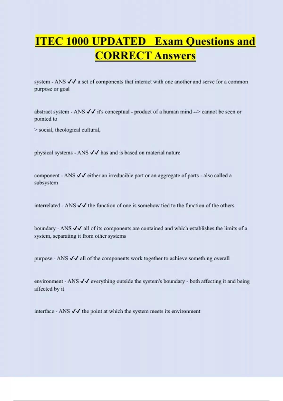 ITEC 1000 UPDATED Exam Questions and CORRECT Answers