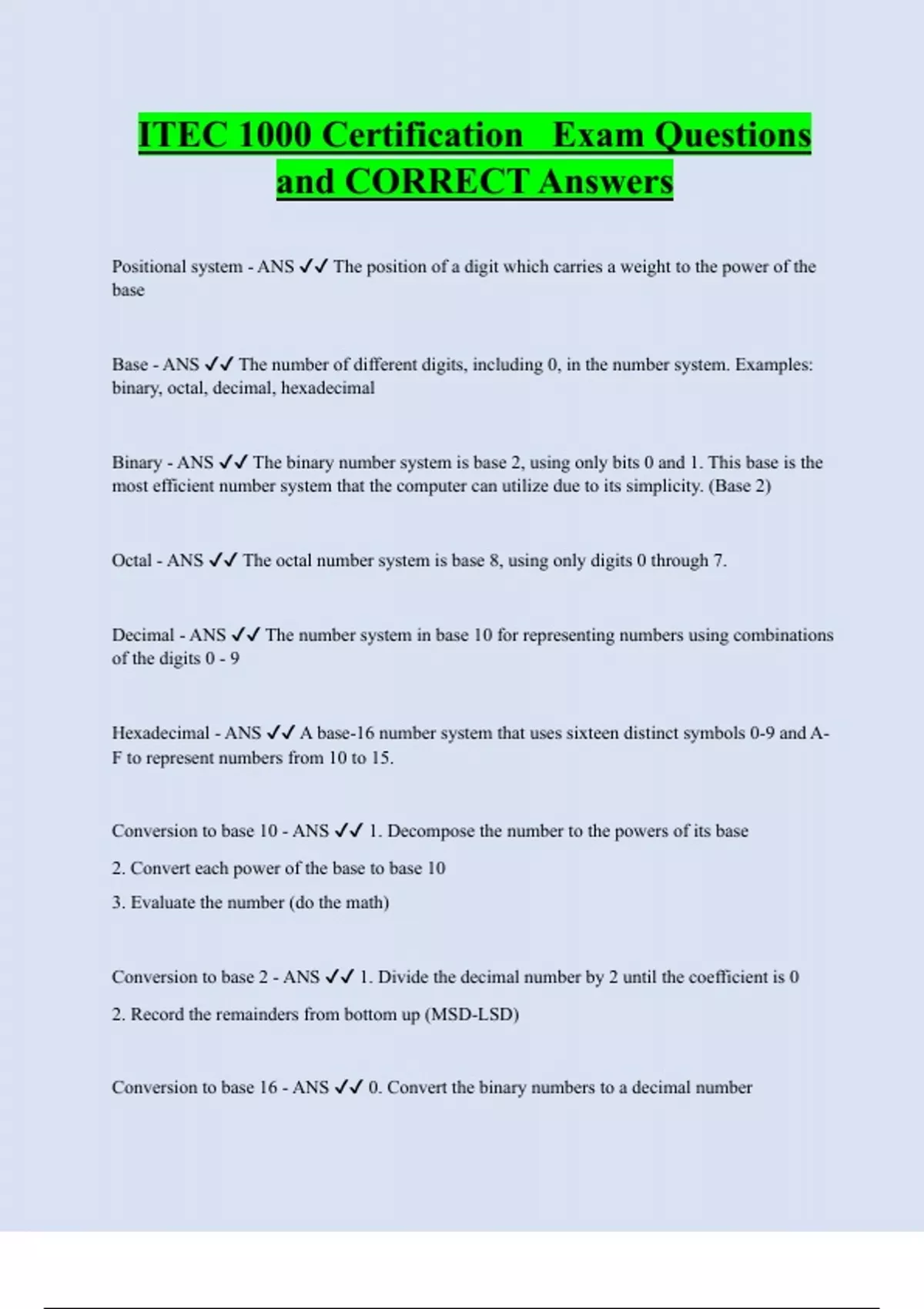 ITEC 1000 Certification Exam Questions and CORRECT Answers