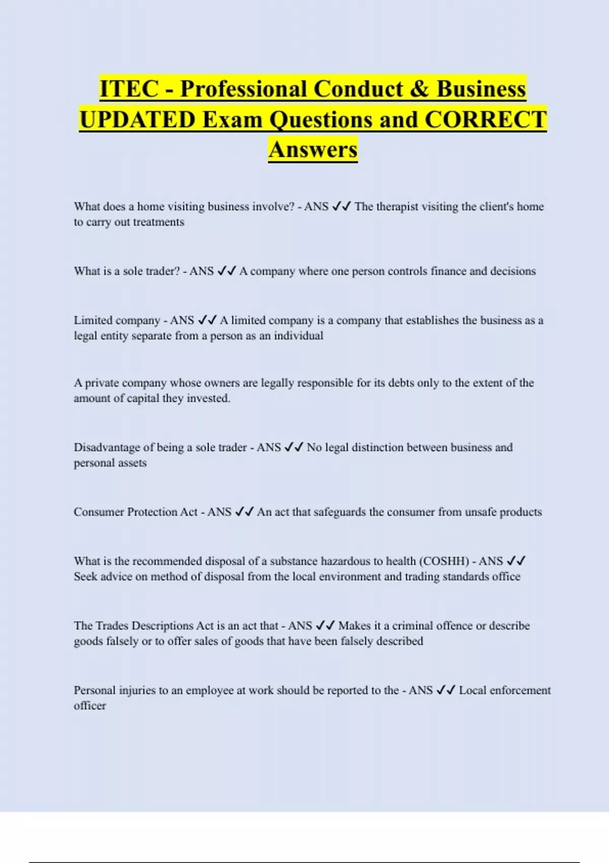 ITEC - Professional Conduct & Business UPDATED Exam Questions and CORRECT Answers