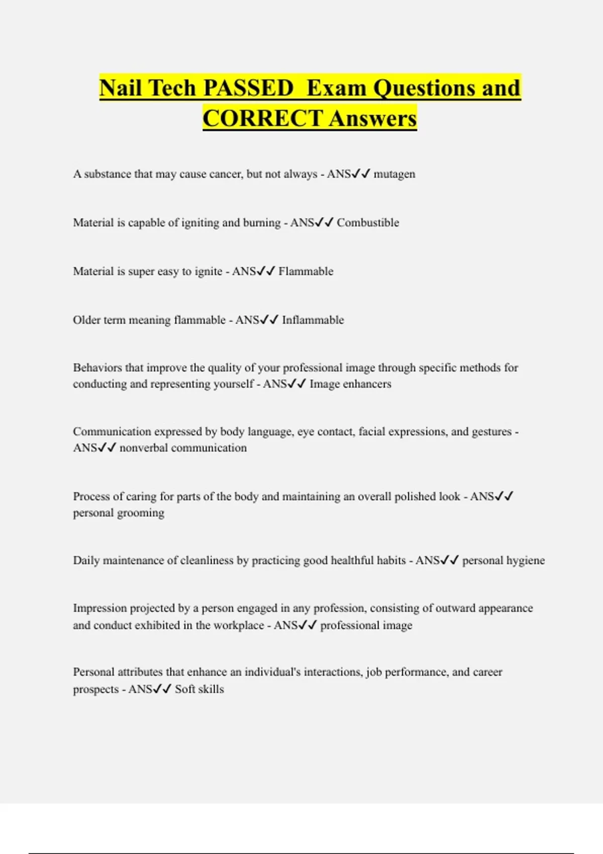 Nail Tech PASSED Exam Questions and CORRECT Answers