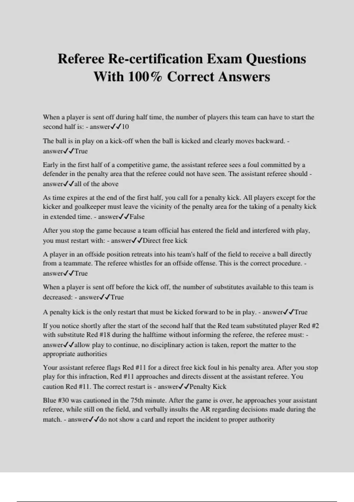 Referee Re-certification Exam Questions With 100% Correct Answers