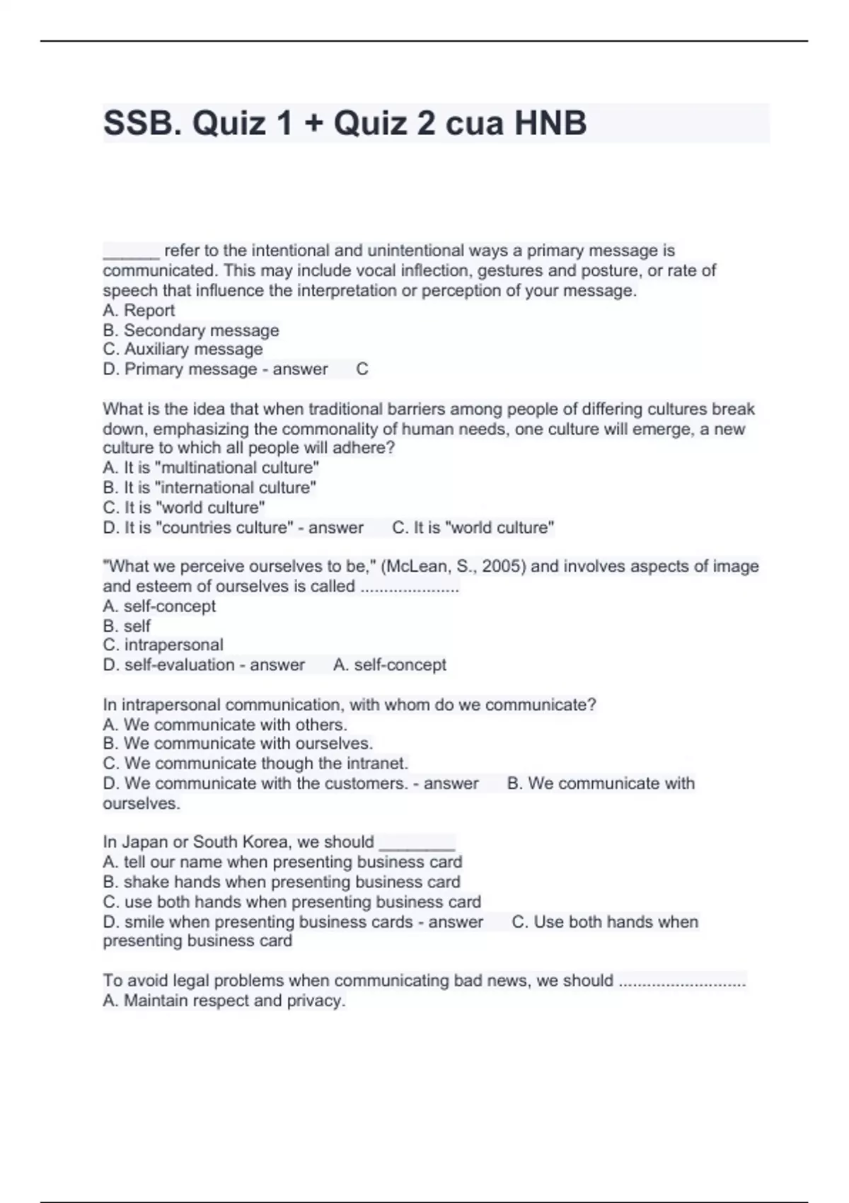 SSB. Quiz 1 + Quiz 2 cua HNB Questions with correct Answers