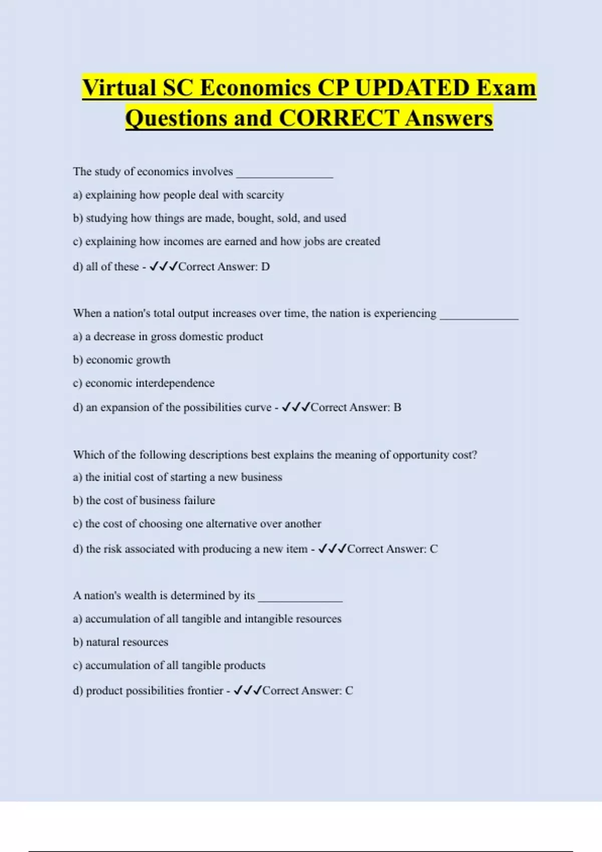 Virtual SC Economics CP UPDATED Exam Questions and CORRECT Answers