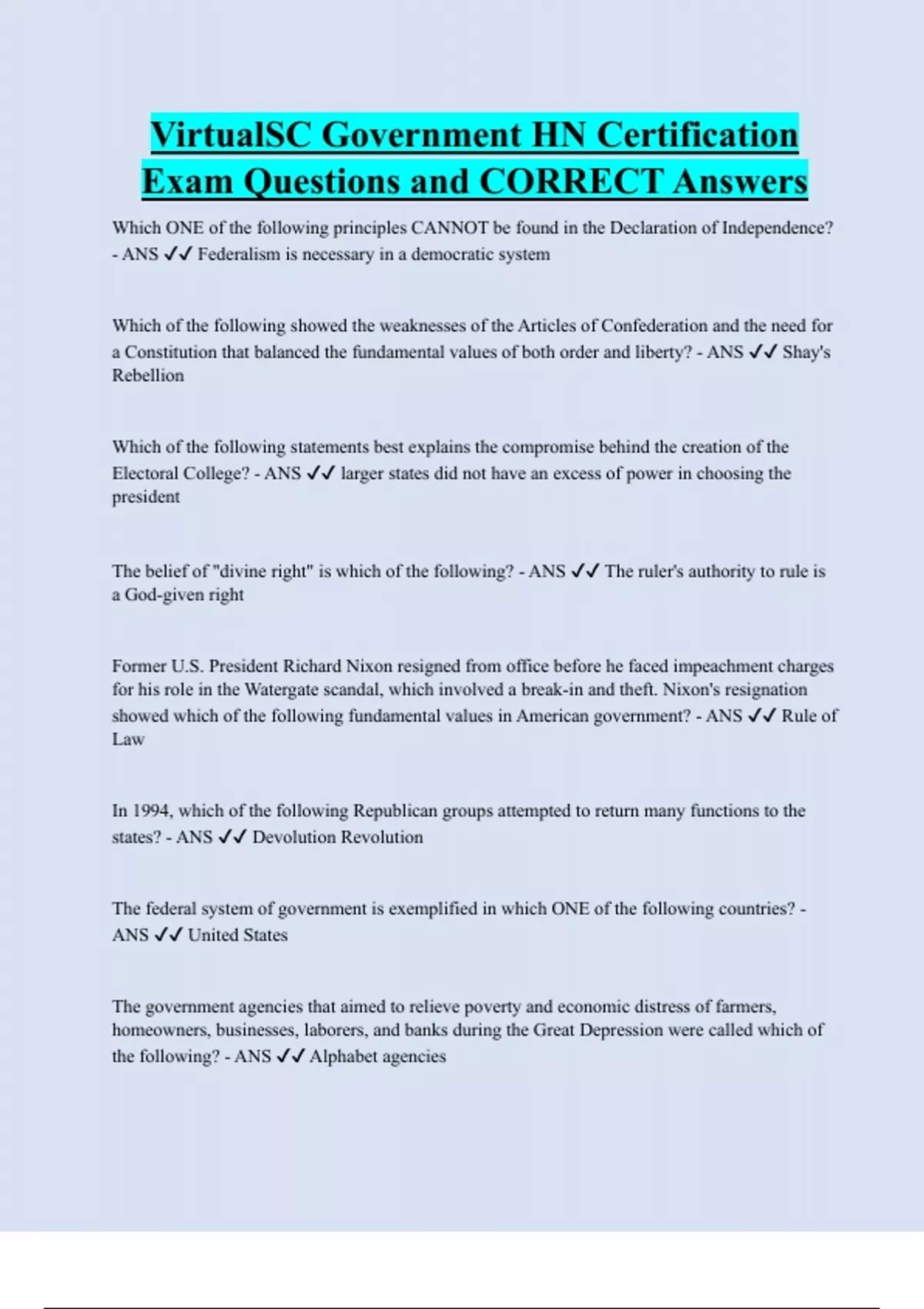 VirtualSC Government HN UPDATED Exam Questions and CORRECT Answers