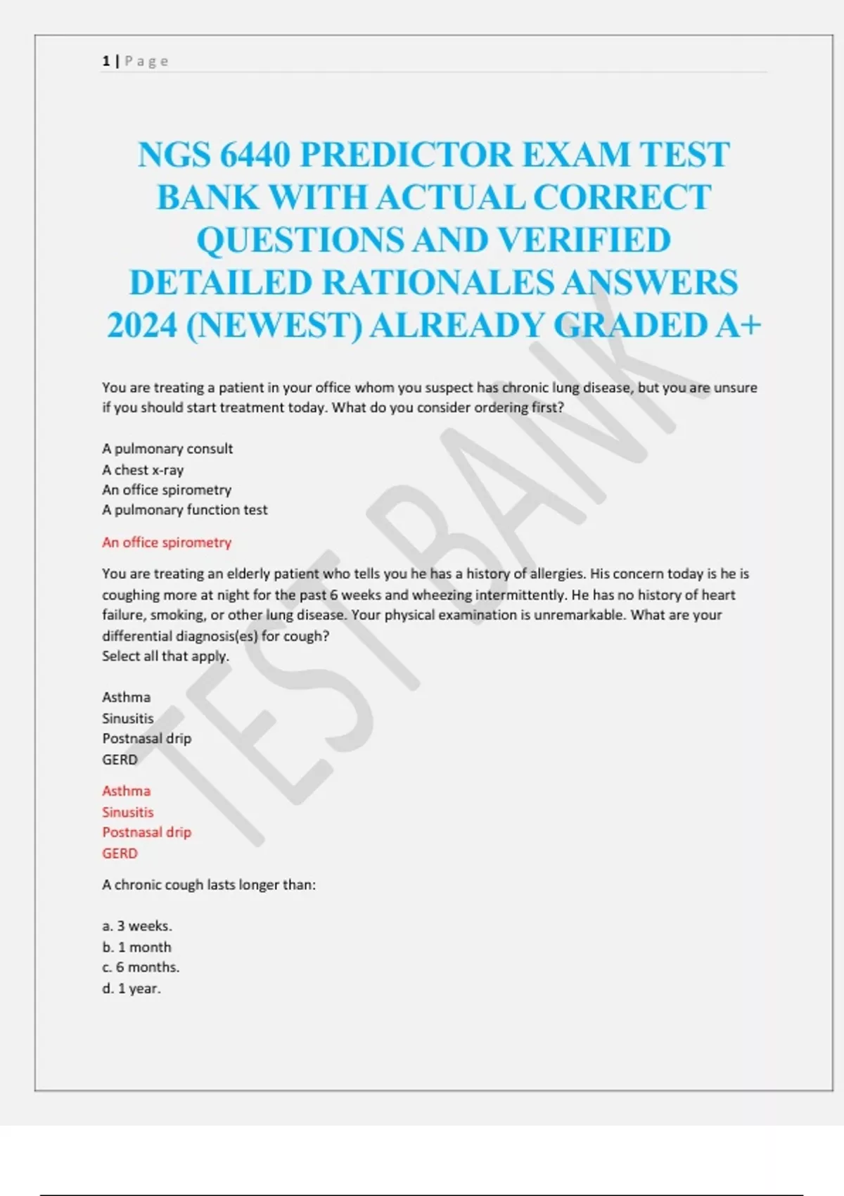 ngs 6440 predictor exam test bank