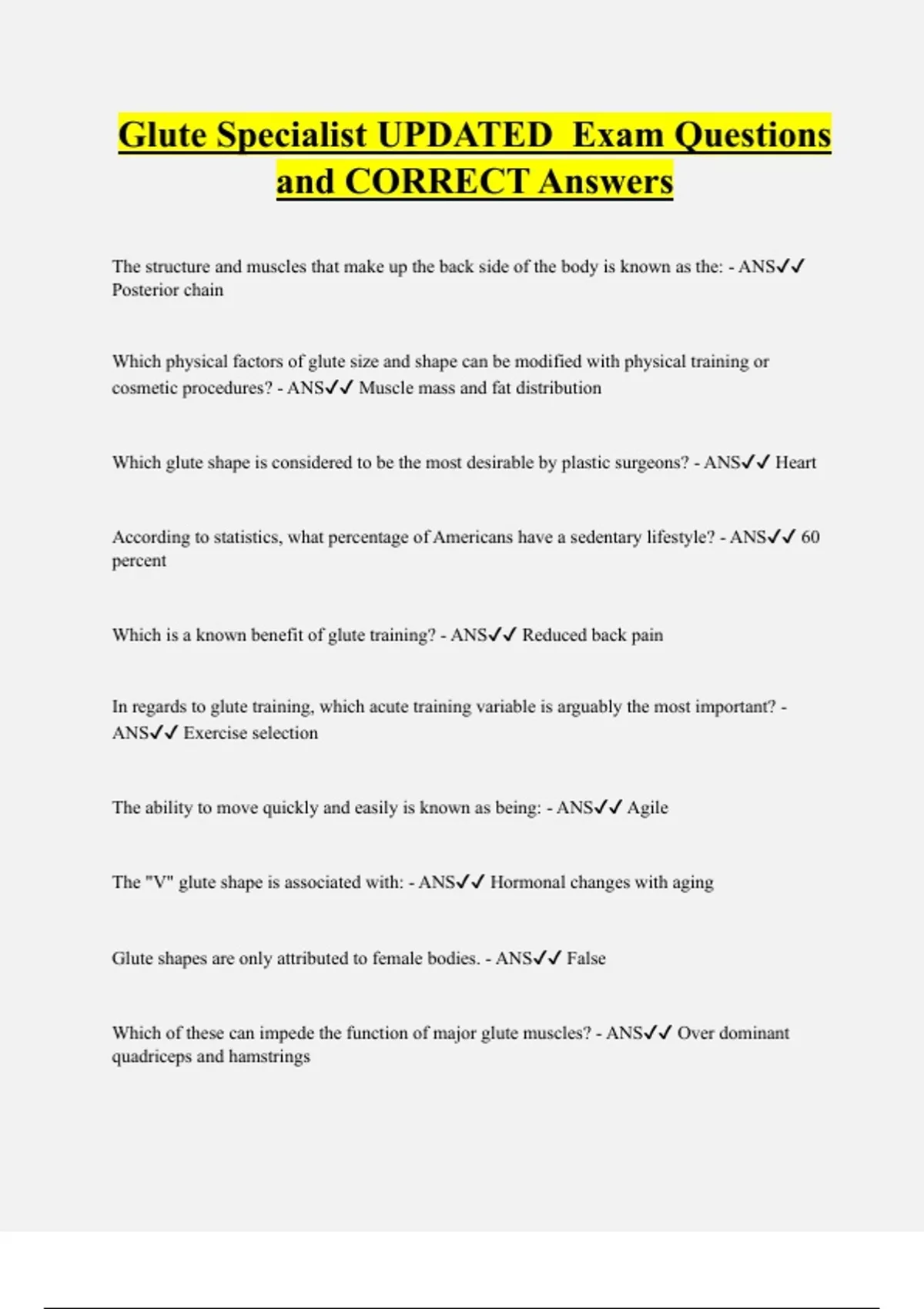 Glute Specialist UPDATED Exam Questions and CORRECT Answers