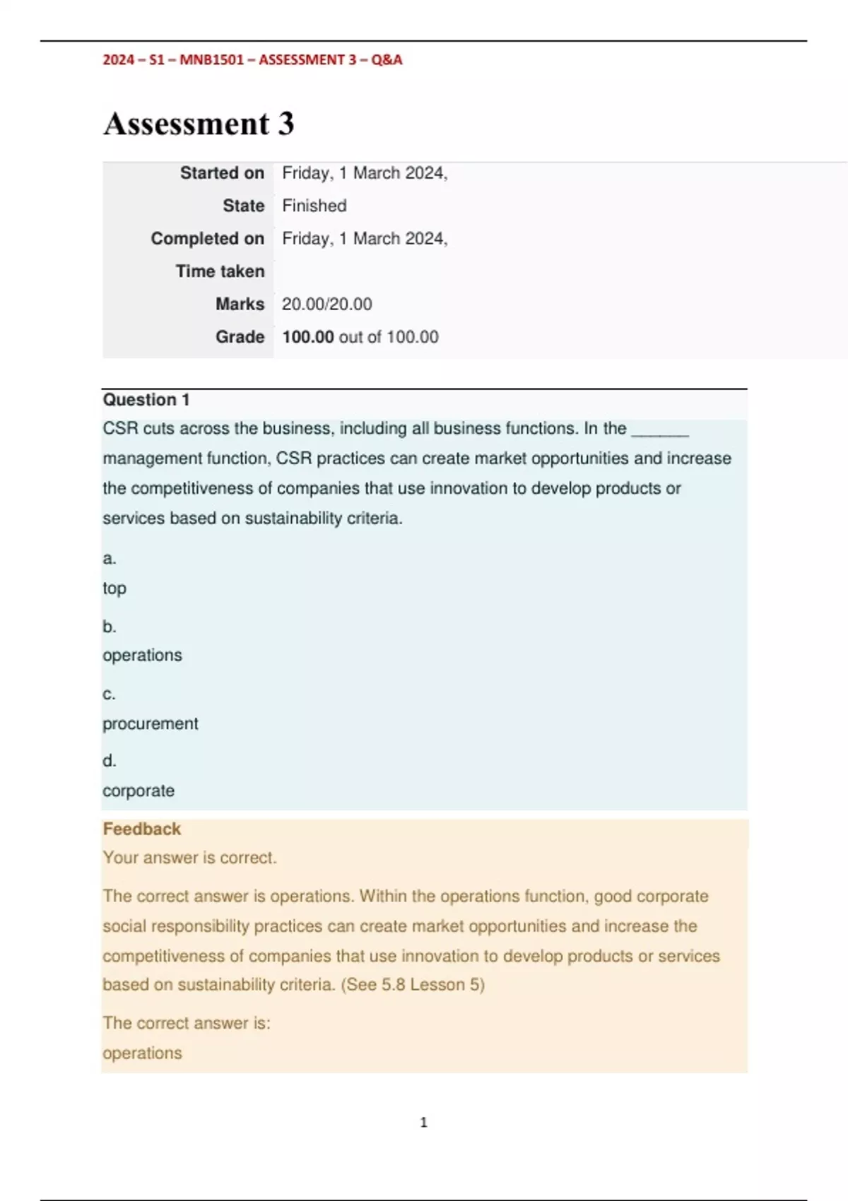 , 2024 – S1 – MNB1501 – ASSESSMENT 3 – Q&A