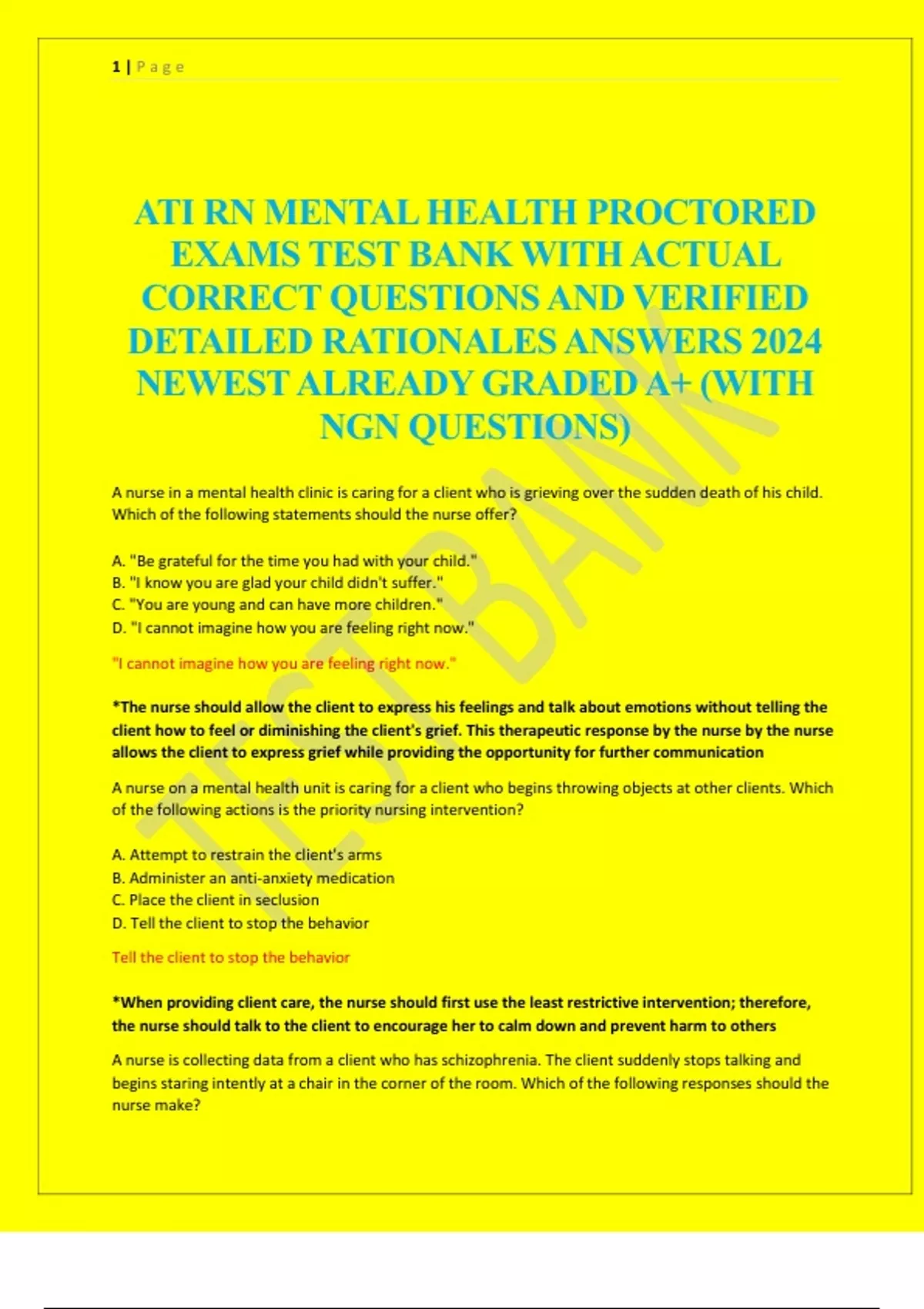 ATI RN MENTAL HEALTH PROCTORED EXAMS TEST BANK WITH ACTUAL CORRECT QUESTIONS AND VERIFIED DETAILED RATIONALES ANSWERS 2024 NEWEST ALREADY GRADED A+ (WITH NGN QUESTIONS)
