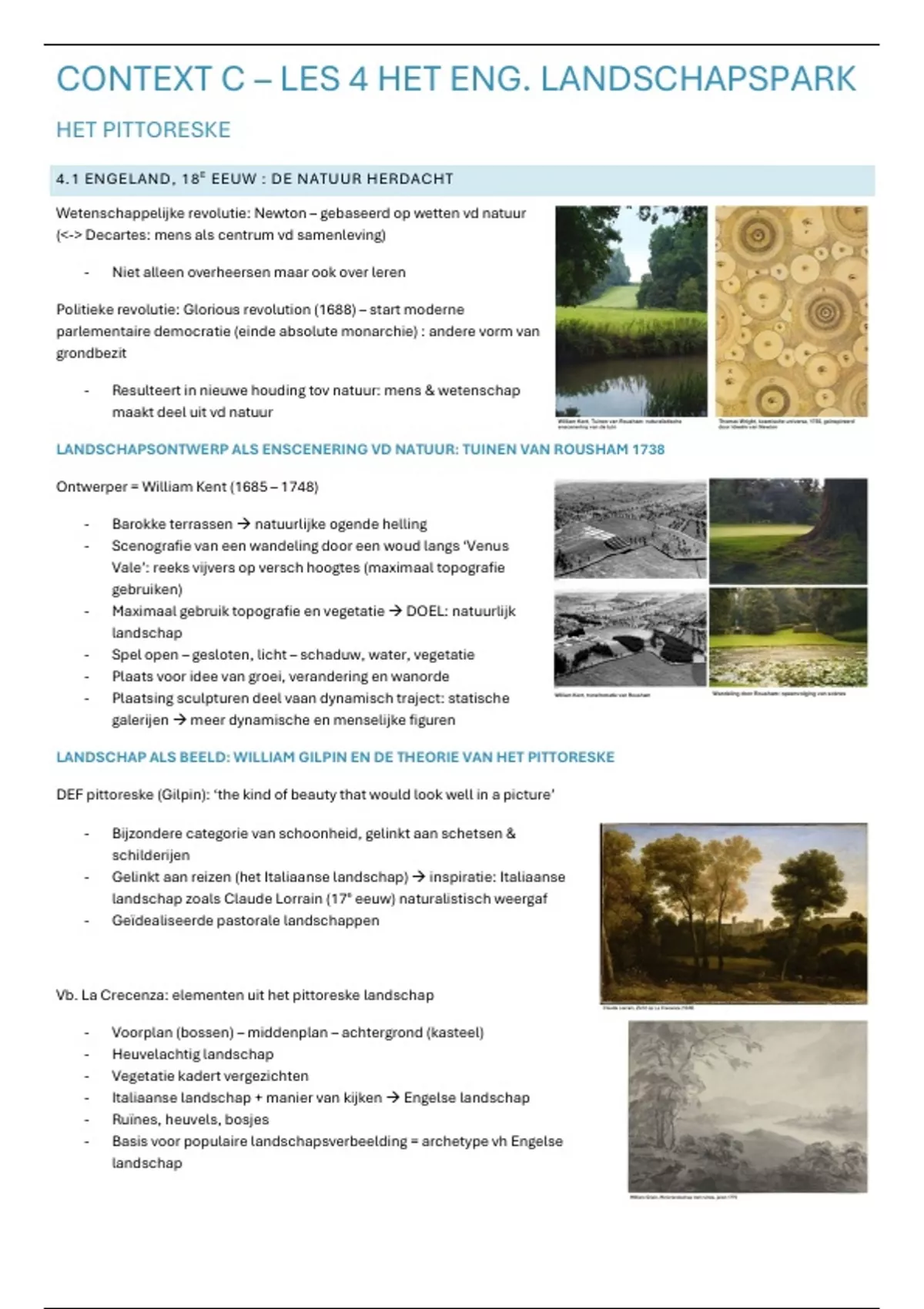 Les 4 Engelse landschapspark_context C samenvatting/lesnotities