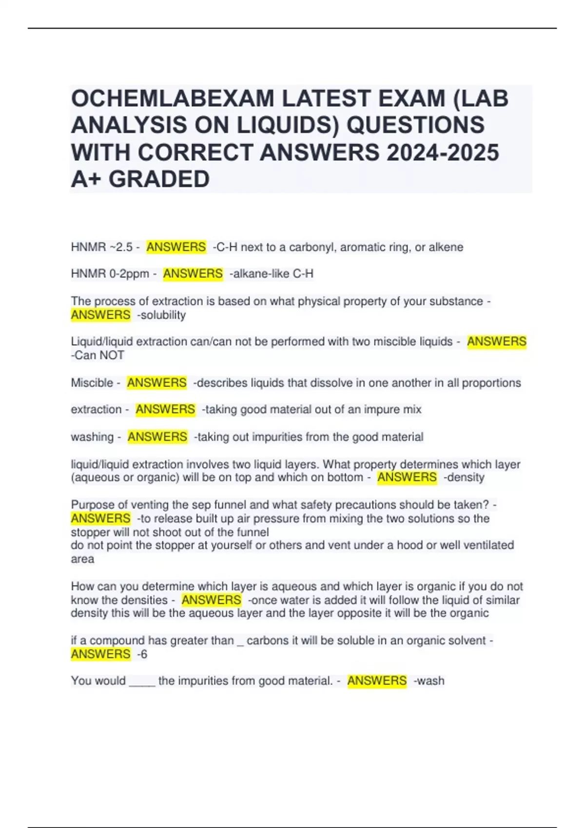 OCHEMLABEXAM LATEST EXAM (LAB ANALYSIS ON LIQUIDS) QUESTIONS WITH CORRECT ANSWERS A+ GRADEDOCHEMLABEXAM LATEST EXAM (LAB ANALYSIS ON LIQUIDS) QUESTIONS WITH CORRECT ANSWERS A+ GRADEDOCHEMLABEXAM LATEST EXAM (LAB ANALYSIS ON LIQUIDS) QUESTIONS WITH CORRECT ANSWERS A+ GRADED
