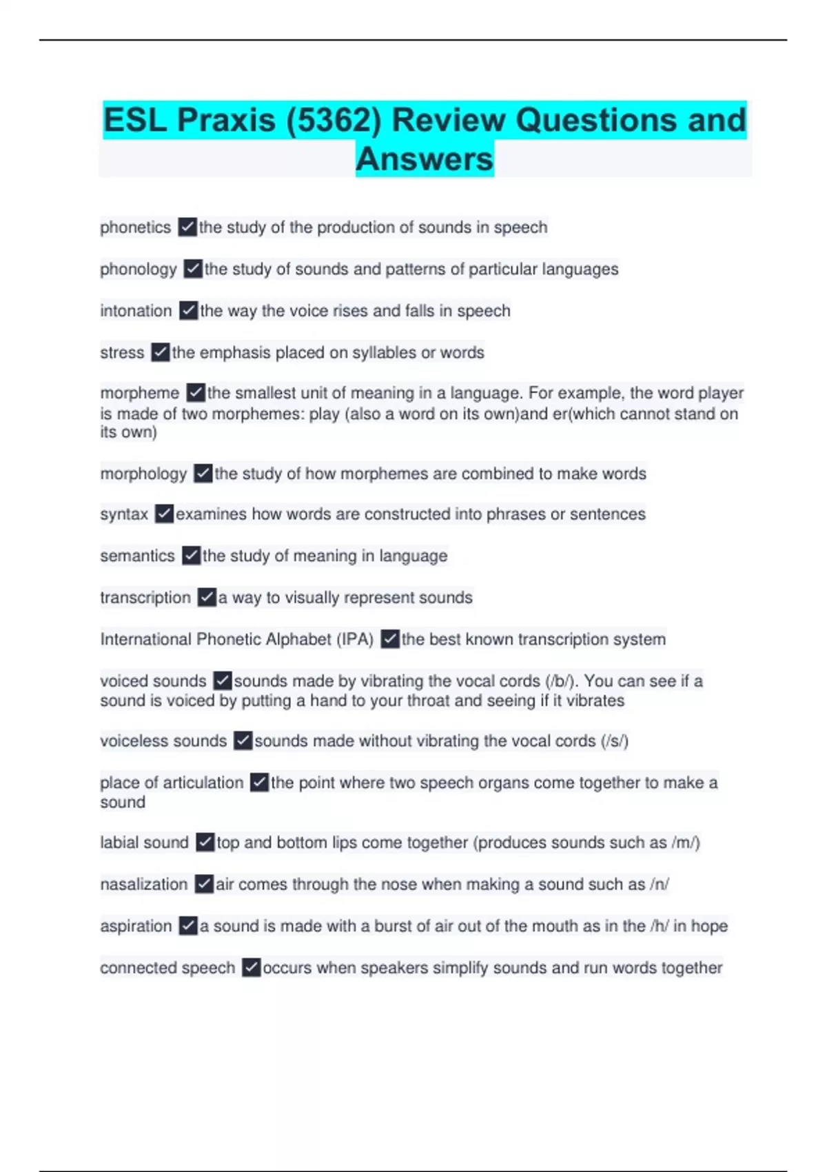 ESL Praxis (5362) Review Questions and Answers