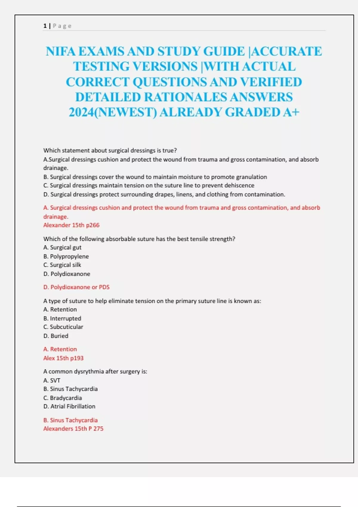 NIFA EXAMS AND STUDY GUIDE |ACCURATE TESTING VERSIONS |WITH ACTUAL CORRECT QUESTIONS AND VERIFIED DETAILED RATIONALES ANSWERS 2024(NEWEST) ALREADY GRADED A+