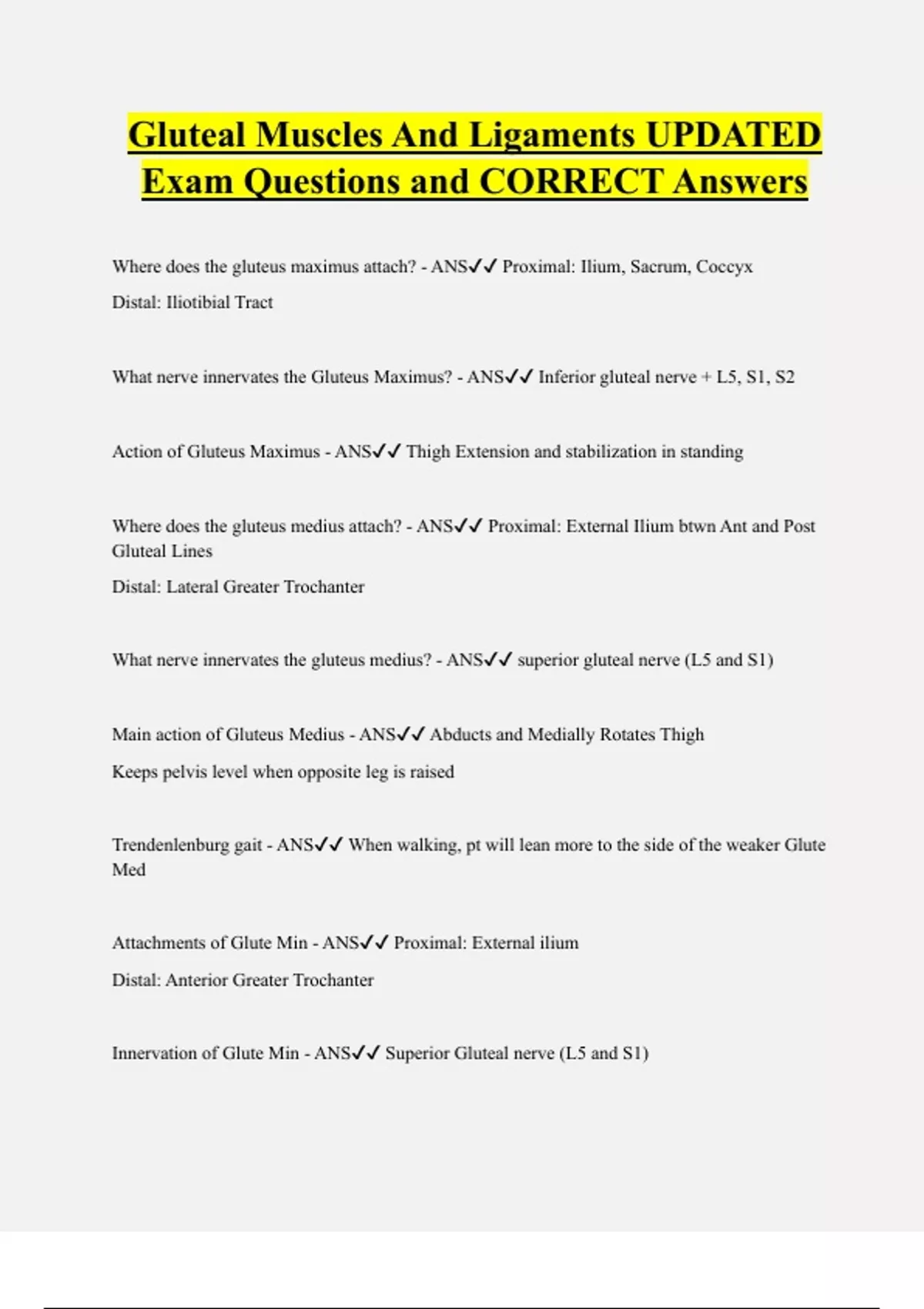 Gluteal Muscles And Ligaments UPDATED Exam Questions and CORRECT Answers