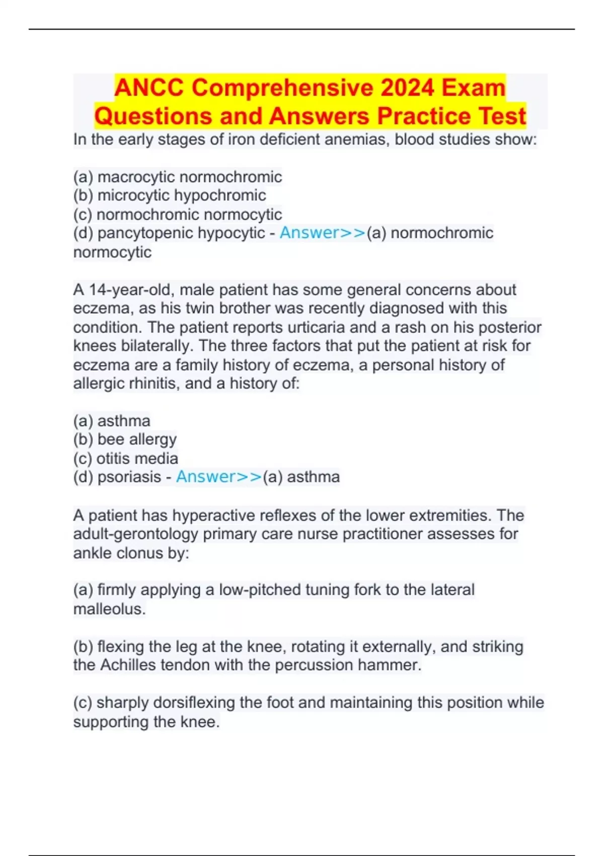 ANCC Comprehensive 2024 Exam Questions and Answers Practice Test