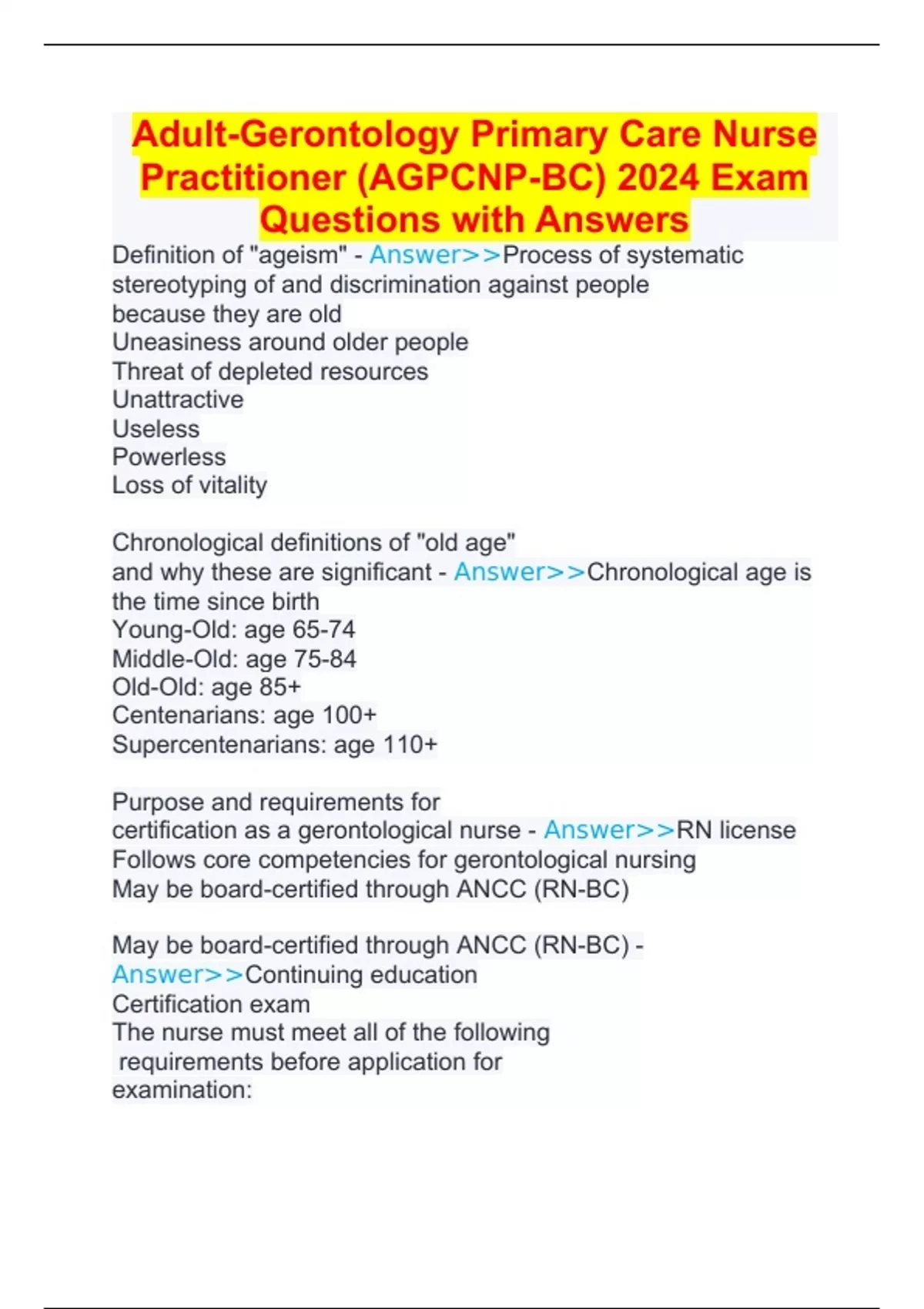 Adult-Gerontology Primary Care Nurse Practitioner (AGPCNP-BC) 2024 Exam Questions with Answers