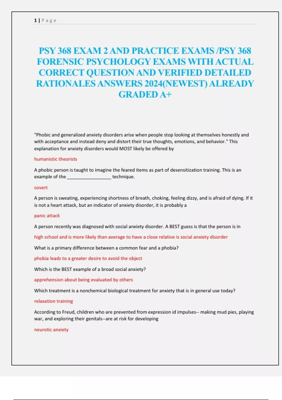 PSY 368 EXAM 2AND PRACTICE EXAMS /PSY 368 FORENSIC PSYCHOLOGY EXAMS WITH ACTUAL CORRECT QUESTION AND VERIFIED DETAILED RATIONALES ANSWERS 2024(NEWEST) ALREADY GRADED A+