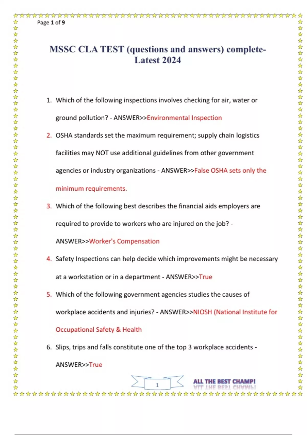 MSSC CLA TEST (questions and answers) complete-Latest 2024