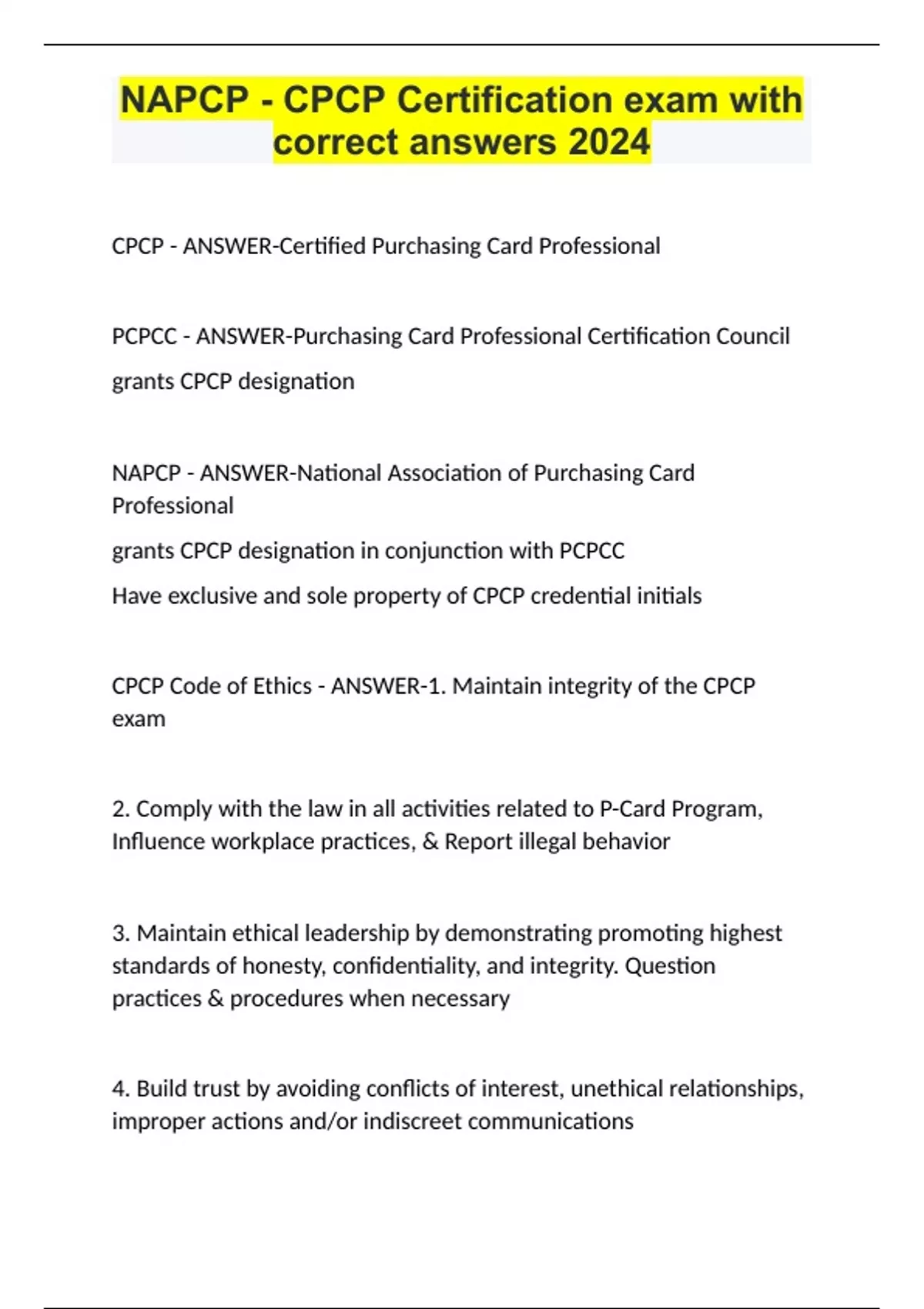 NAPCP - CPCP Certification exam with correct answers 2024.