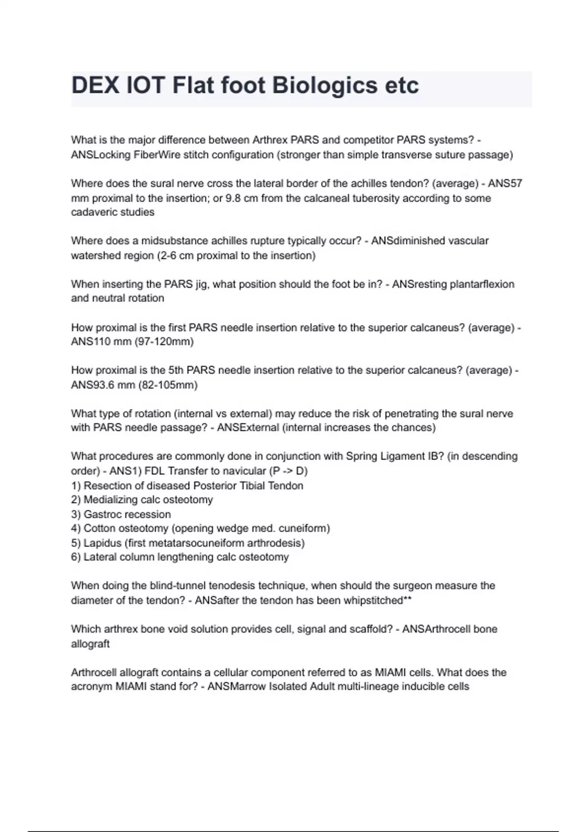 DEX IOT Flat foot Biologics questions and answers already graded A+ 2024/2025