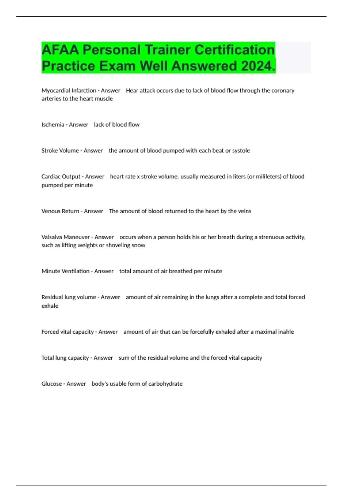 AFAA Personal Trainer Certification Practice Exam Well Answered 2024.