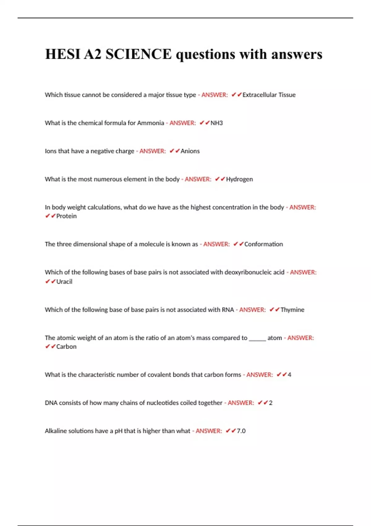 HESI A2 SCIENCE questions with answers
