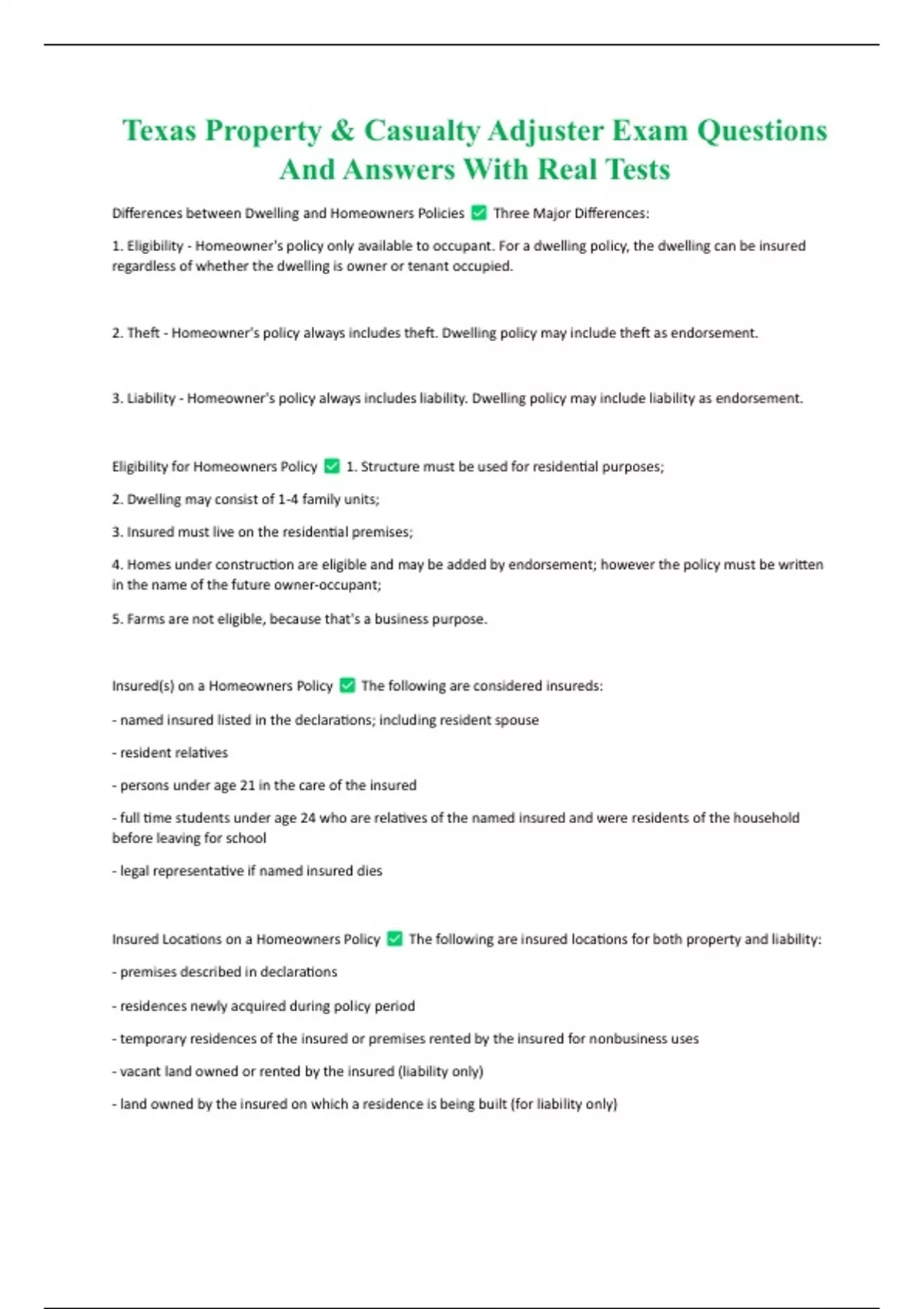 Texas Property & Casualty Adjuster Exam Questions And Answers With Real Tests Texas Property & Casualty Adjuster Exam Questions And Answers With Real Tests