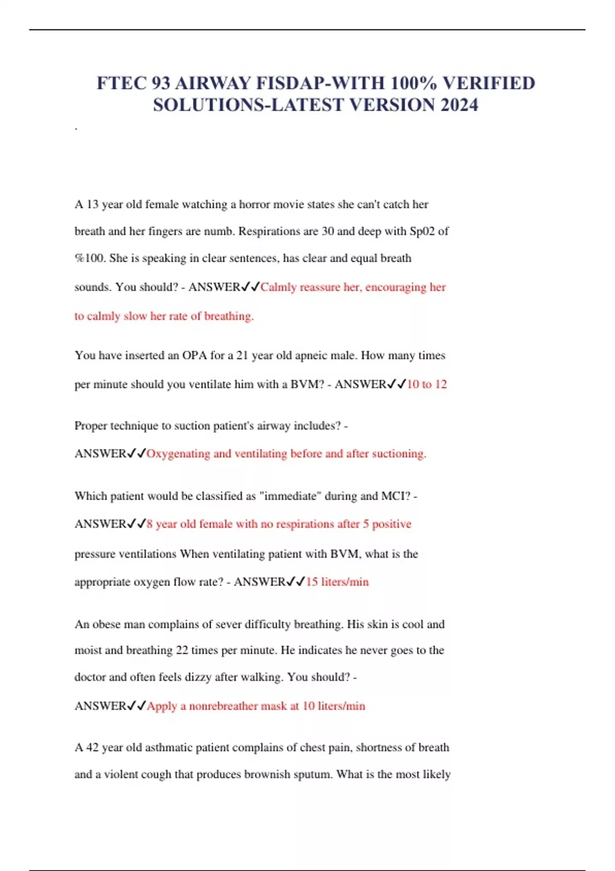 FTEC 93 Airway FISDAP-WITH 100% Verified solutions-