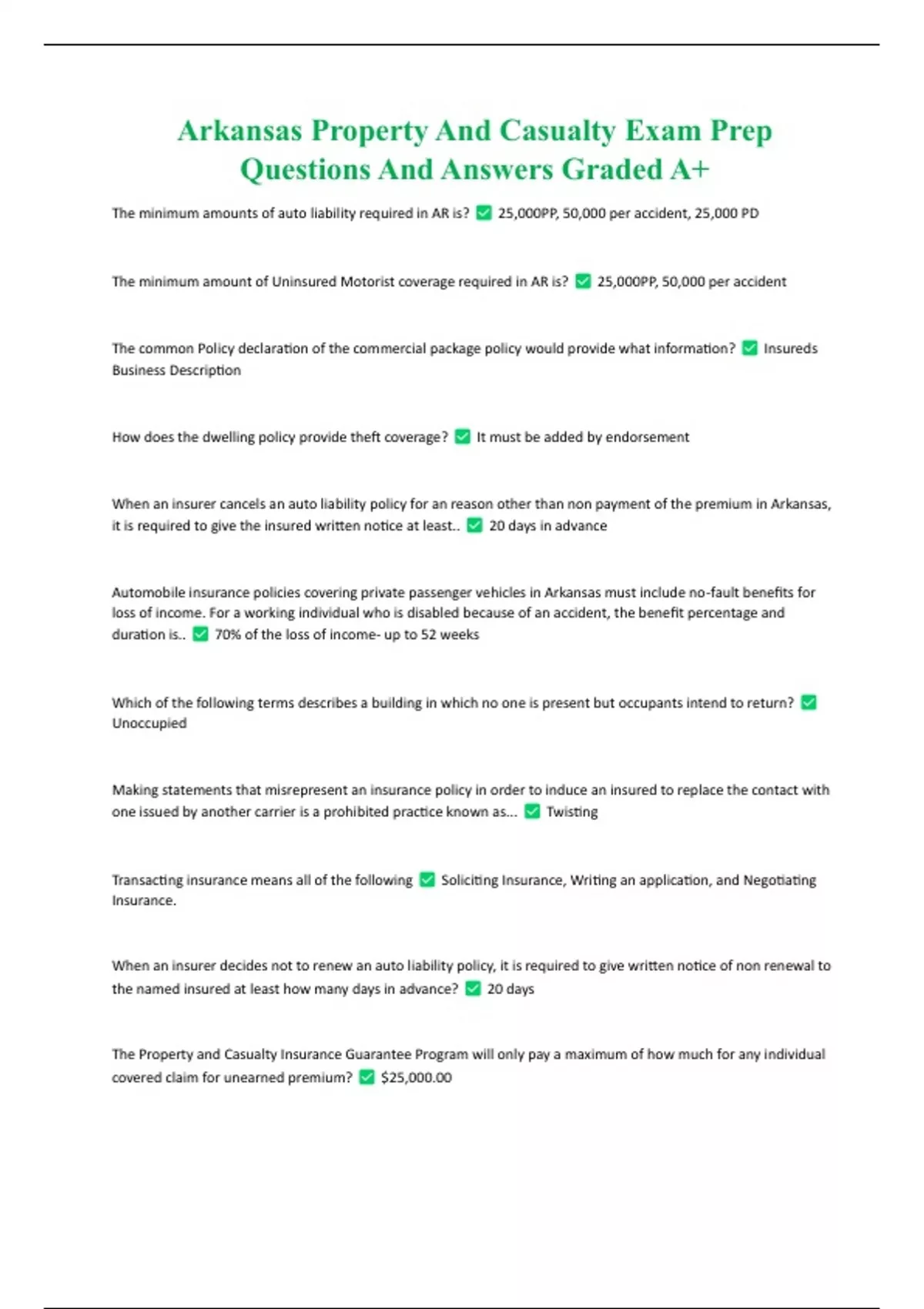 Arkansas Property And Casualty Exam Prep Questions And Answers Graded A+