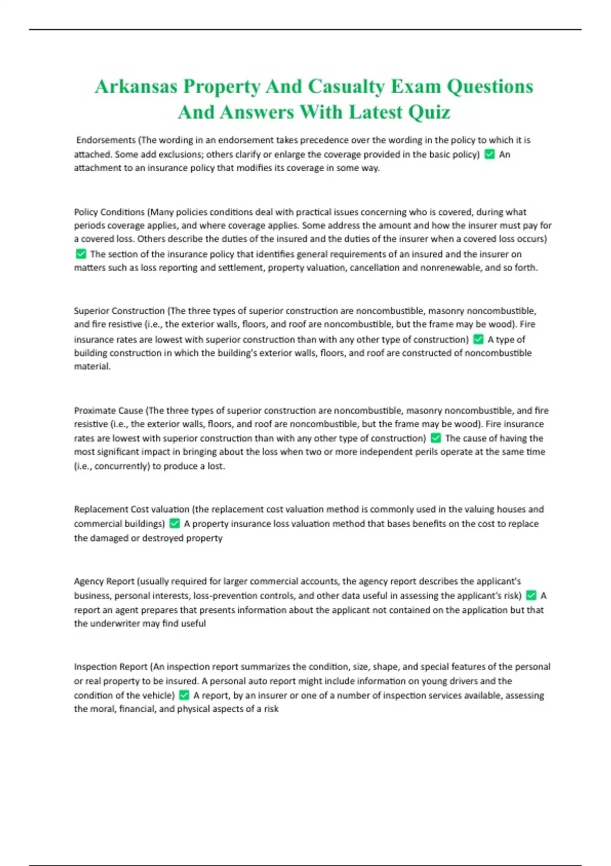 Arkansas Property And Casualty Exam Questions And Answers With Latest Quiz