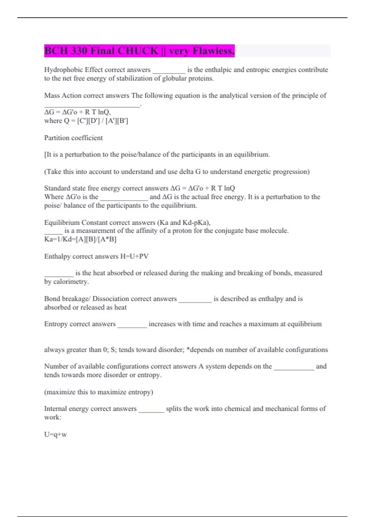 BCH 330 Final CHUCK || very Flawless.