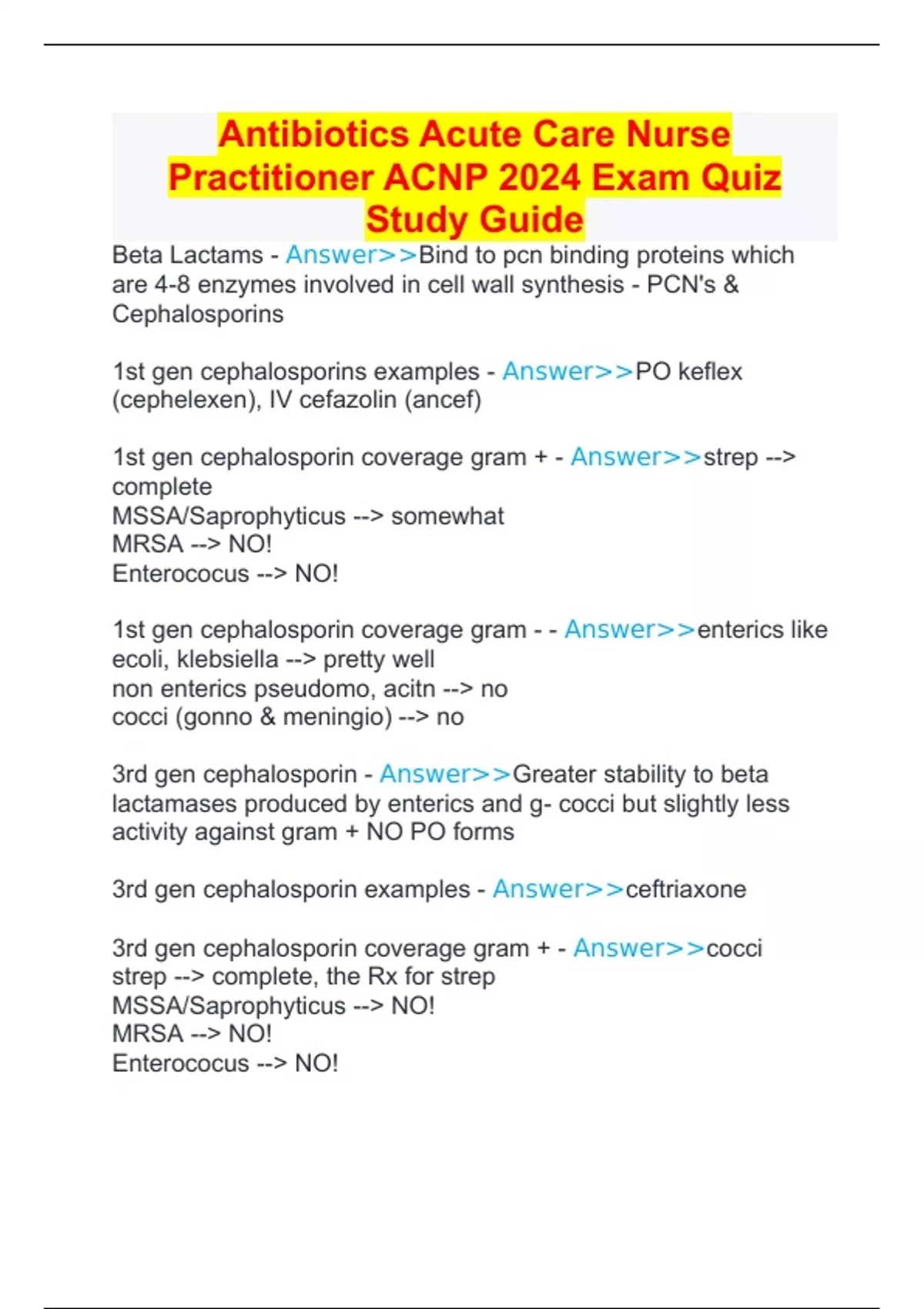 Antibiotics Acute Care Nurse Practitioner ACNP 2024 Exam Quiz Study Guide