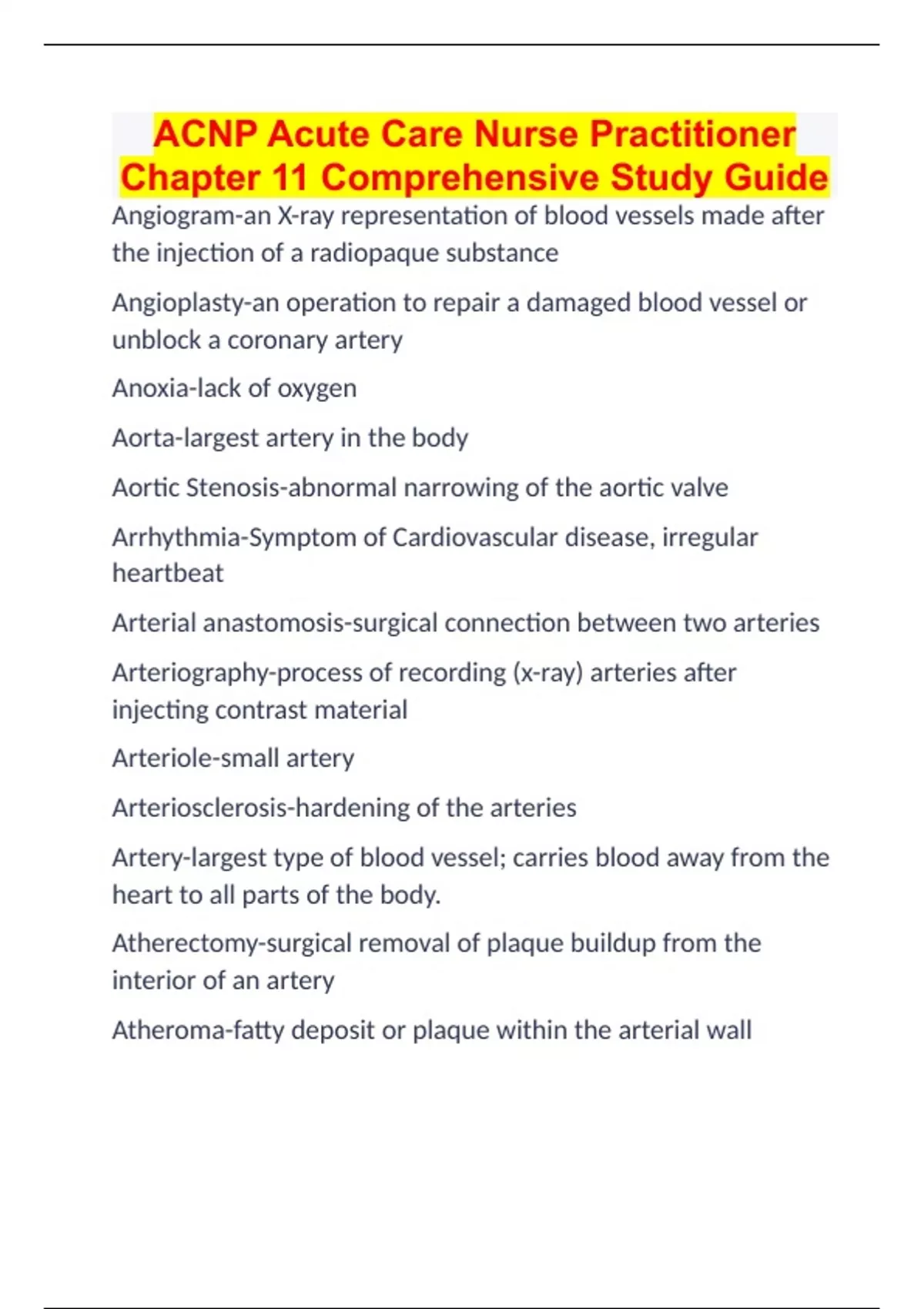 ACNP Acute Care Nurse Practitioner Chapter 11 Comprehensive Study Guide