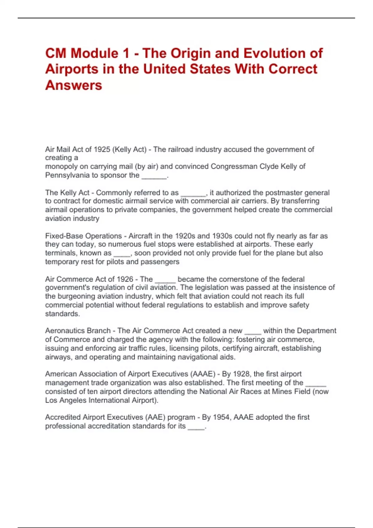 CM Module 1 - The Origin and Evolution of Airports in the United States With Correct Answers