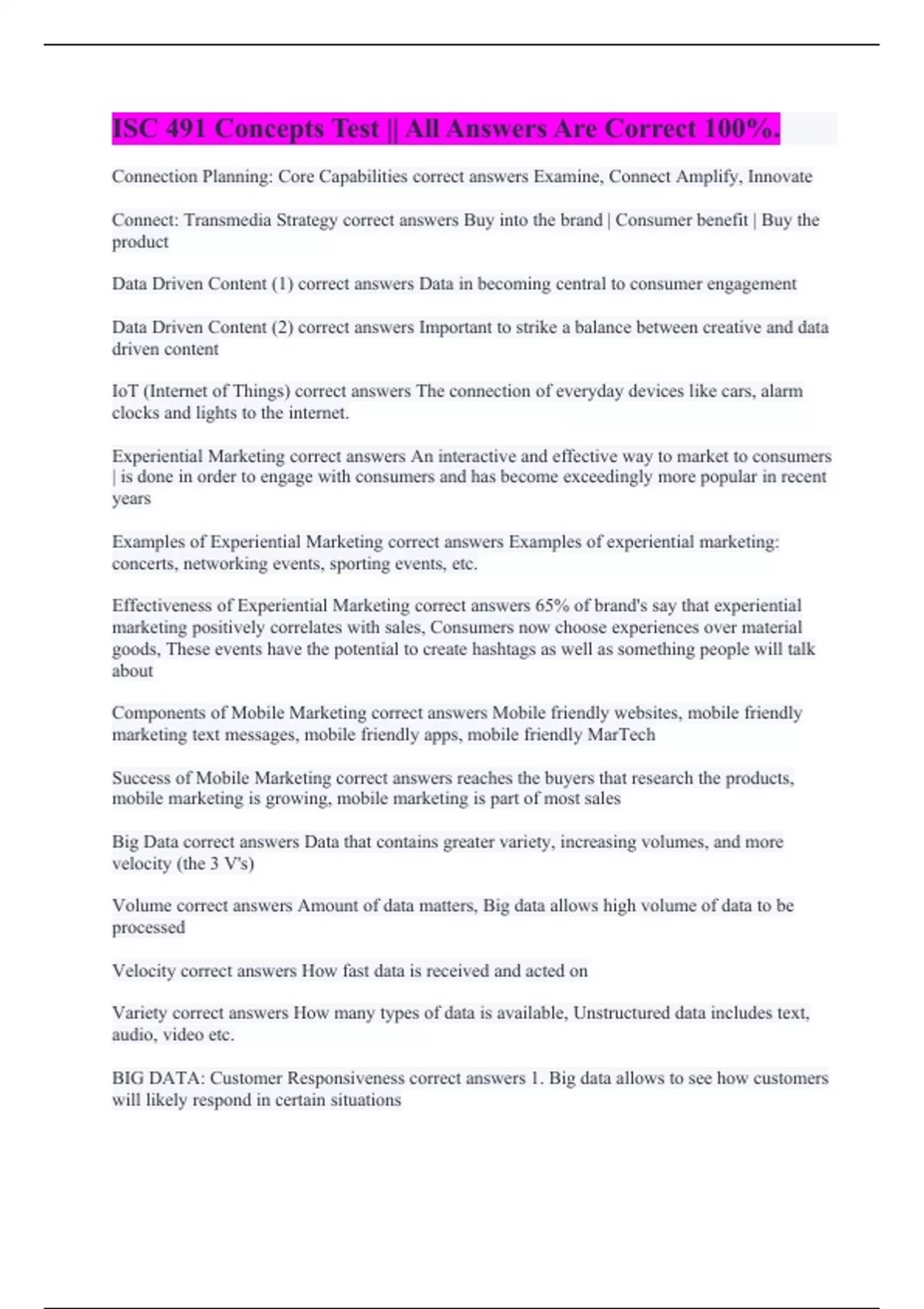 ISC 491 Concepts Test || All Answers Are Correct 100%.