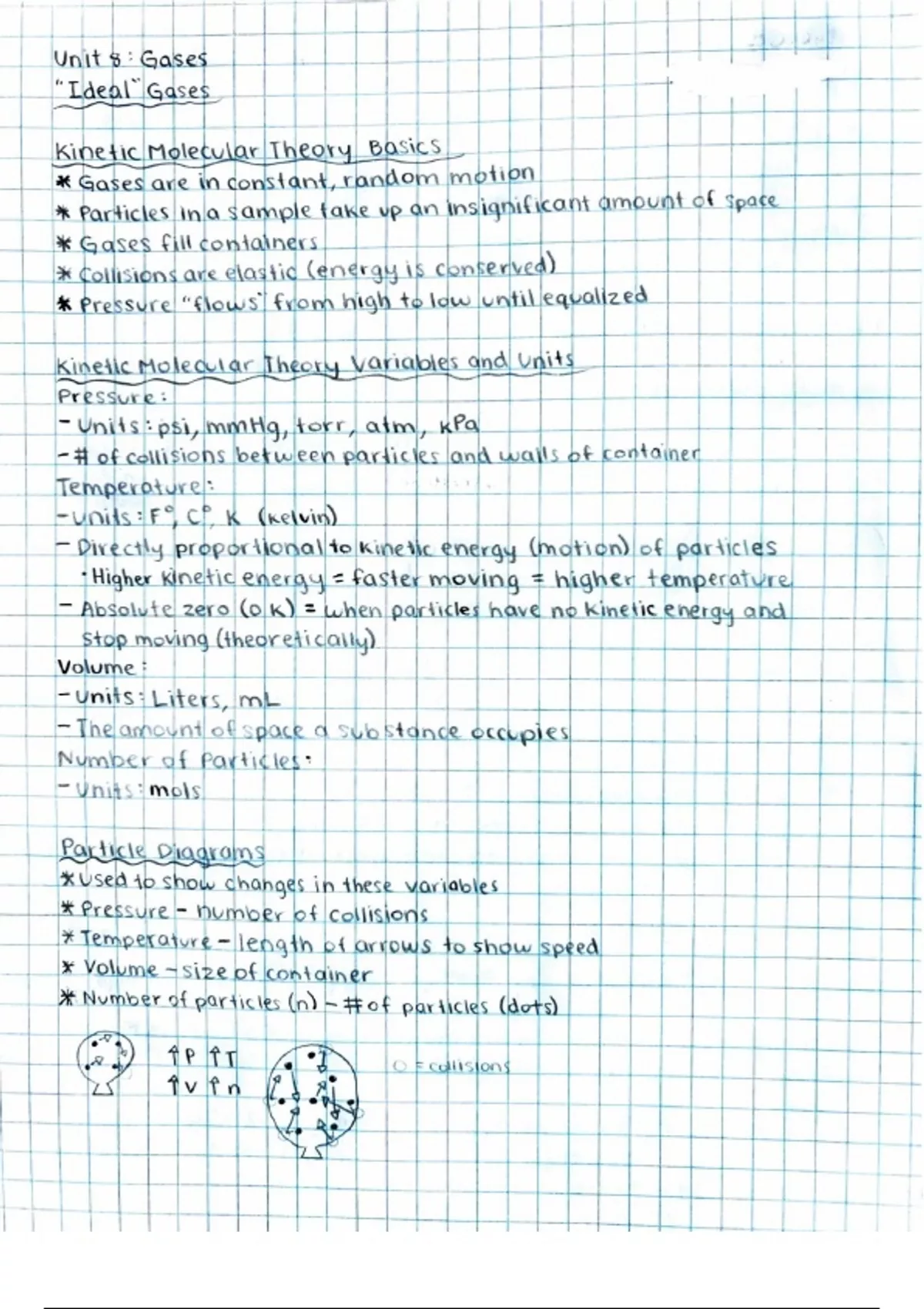 Chemistry Unit 8 Gases Notes covers ideal gases, kinetic molecular theory, pressure, temperature, volume, particle diagrams, Boyle's law, Gay-Lussac's law, Charles' law, combined gas laws and etc.