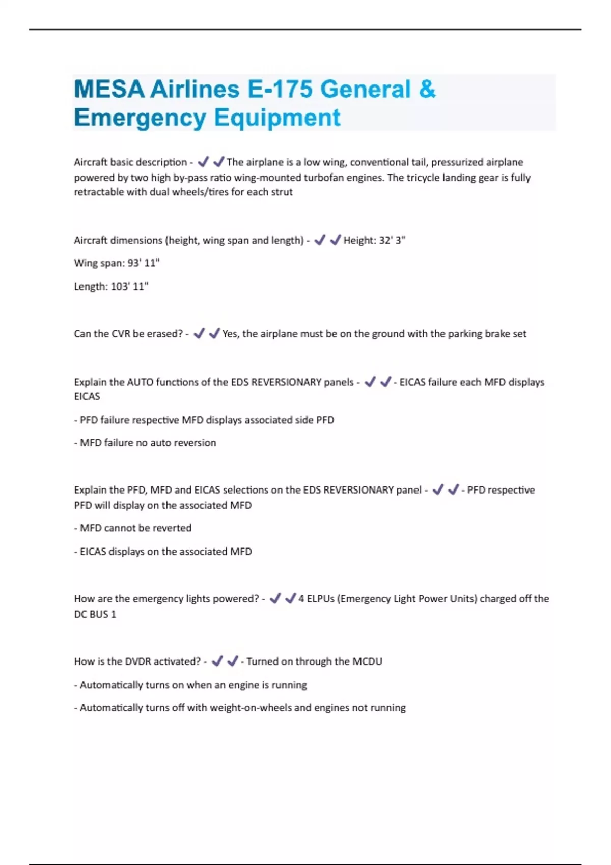 MESA Airlines E-175 General & Emergency Equipment Questions And Answers Graded A+