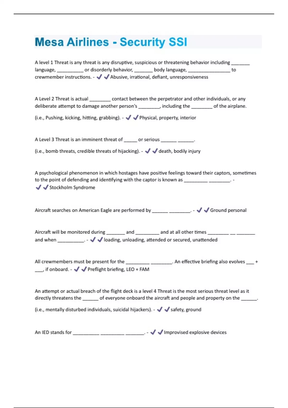 Mesa Airlines - Security SSI Questions & Answers Already Passed!!