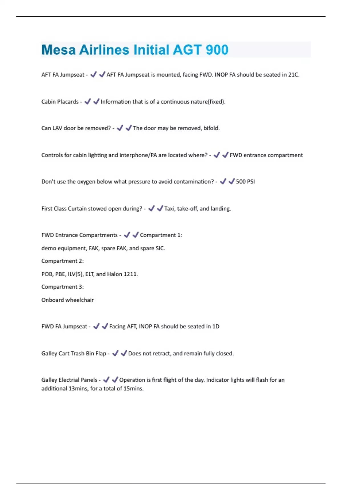 Mesa Airlines Initial AGT 900 Questions And Answers With Verified Study Solutions