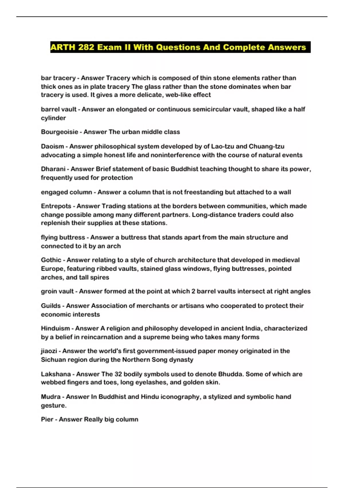 ARTH 282 Exam II With Questions And Complete Answers ...