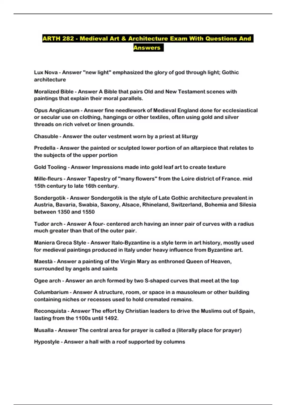 ARTH 282 - Medieval Art & Architecture Exam With Questions And Answers ...