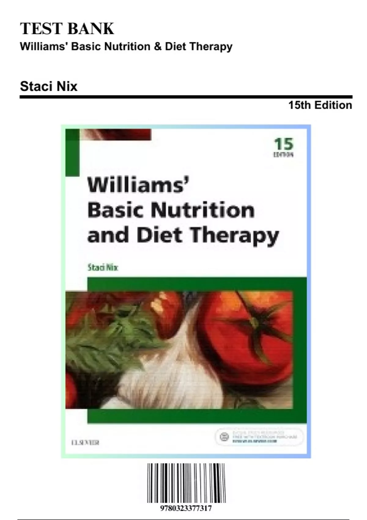Test Bank for Williams' Basic Nutrition & Diet Therapy, 15th Edition by Staci Nix, 9780323377317, Covering Chapters 1-23 | Includes Rationales