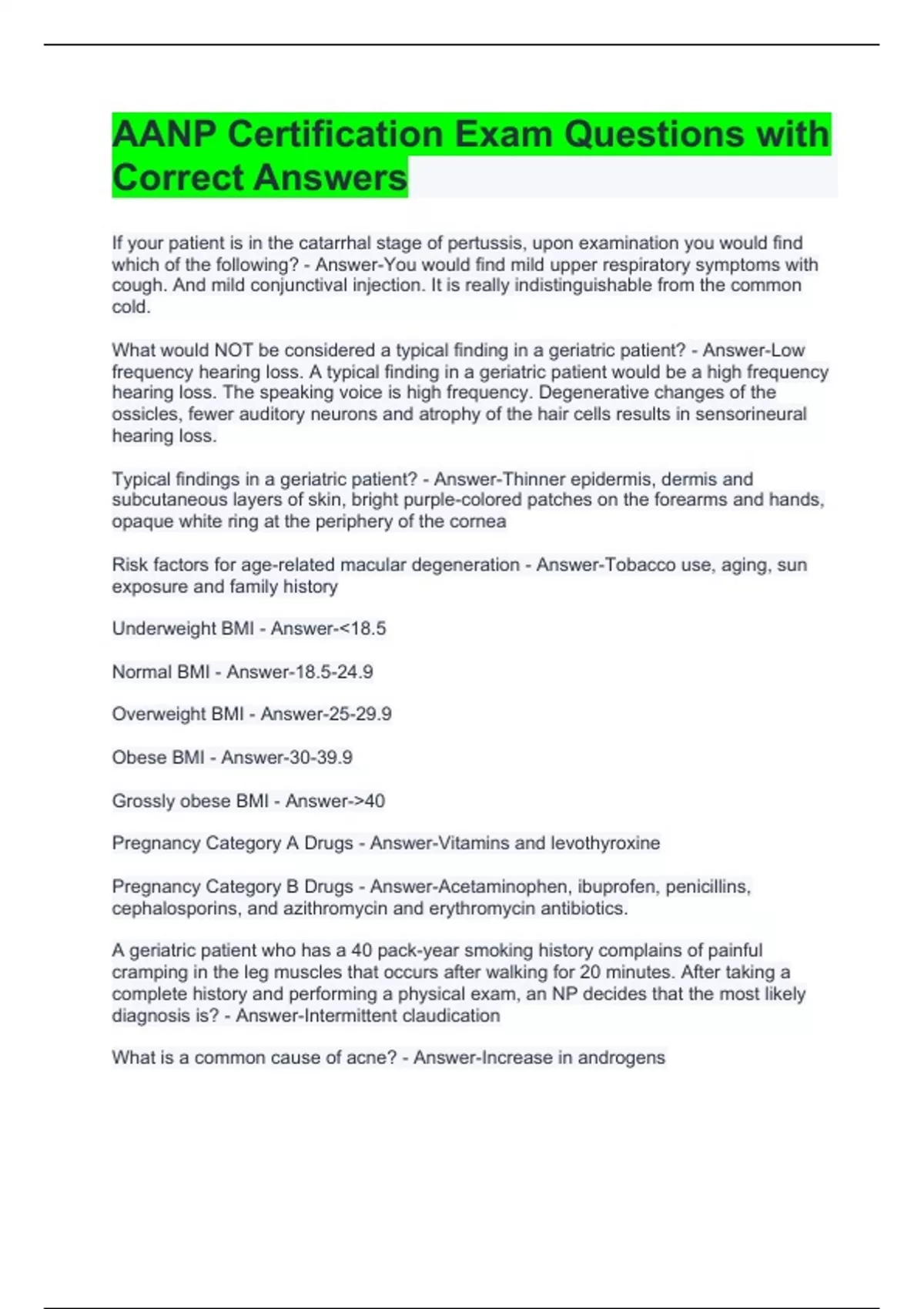 Underweight BMI - Answer-<18.5