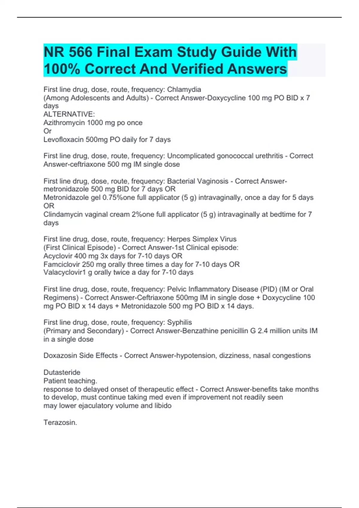 NR 566 Final Exam Study Guide With 100% Correct And Verified Answers