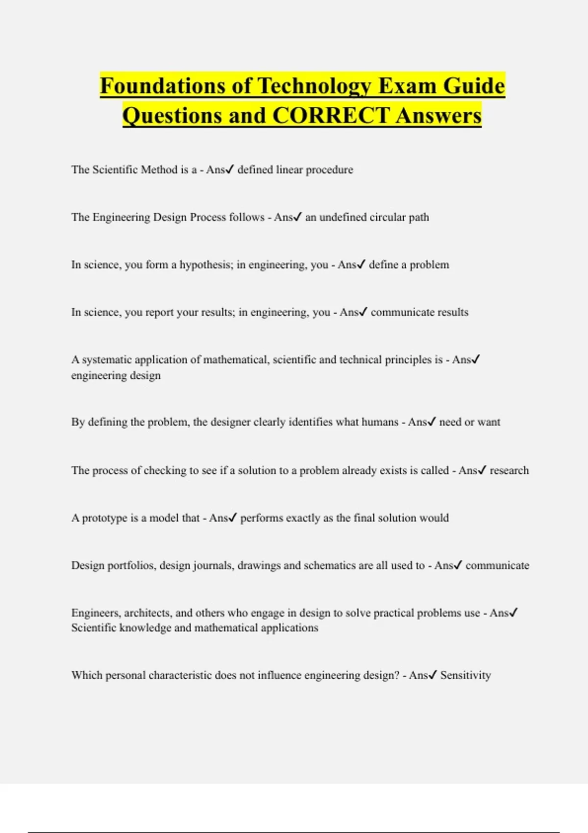 Foundations of Technology Exam Guide Questions and CORRECT Answers